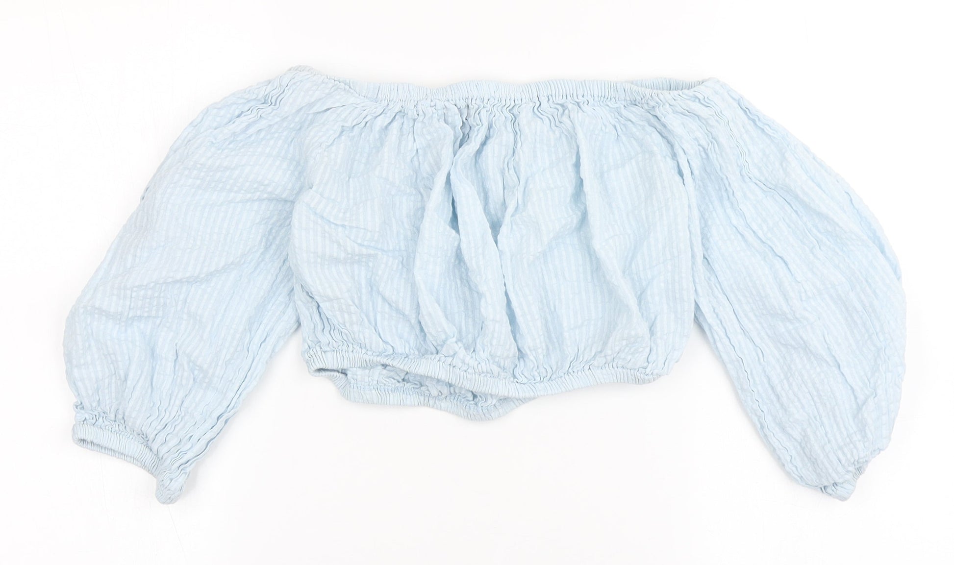 South Beach Womens Blue 100% Cotton Cropped Blouse Size M Off the Shoulder