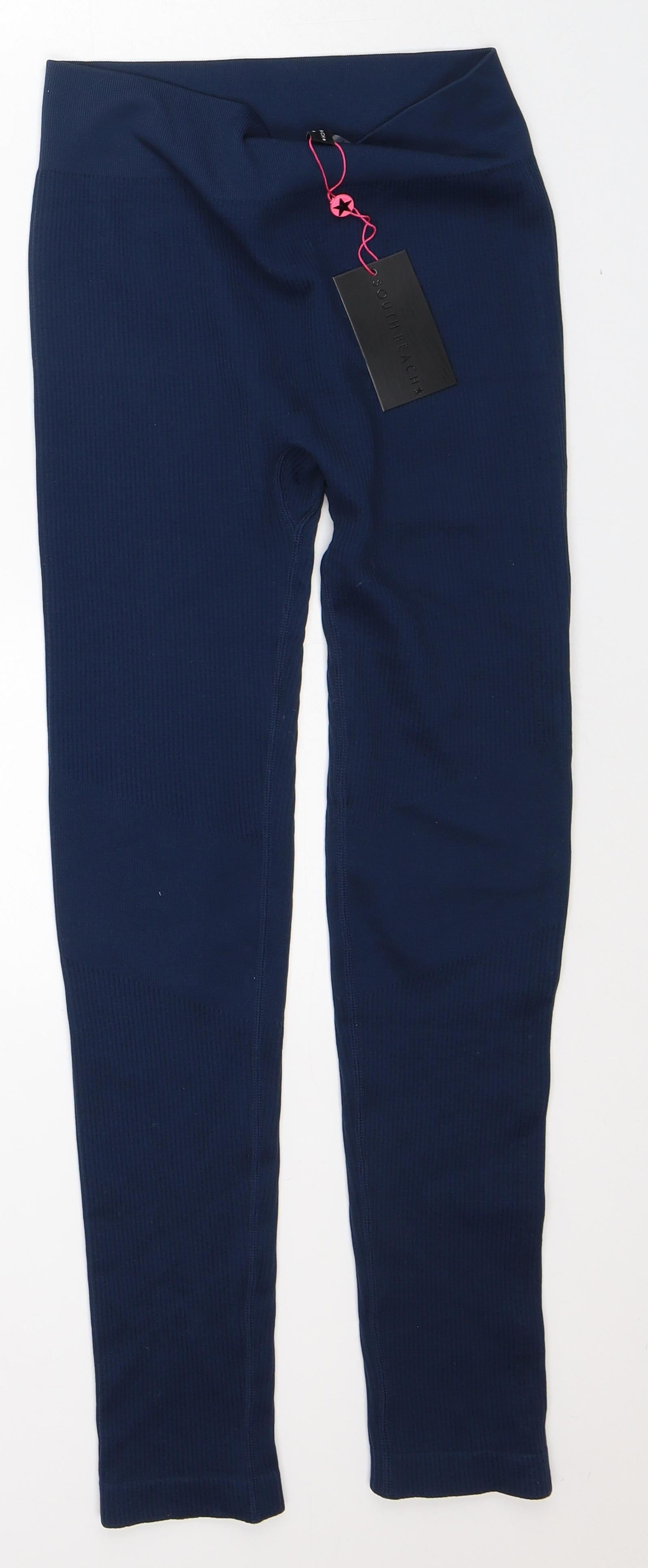 South Beach Womens Blue Nylon Capri Leggings Size S L27 in