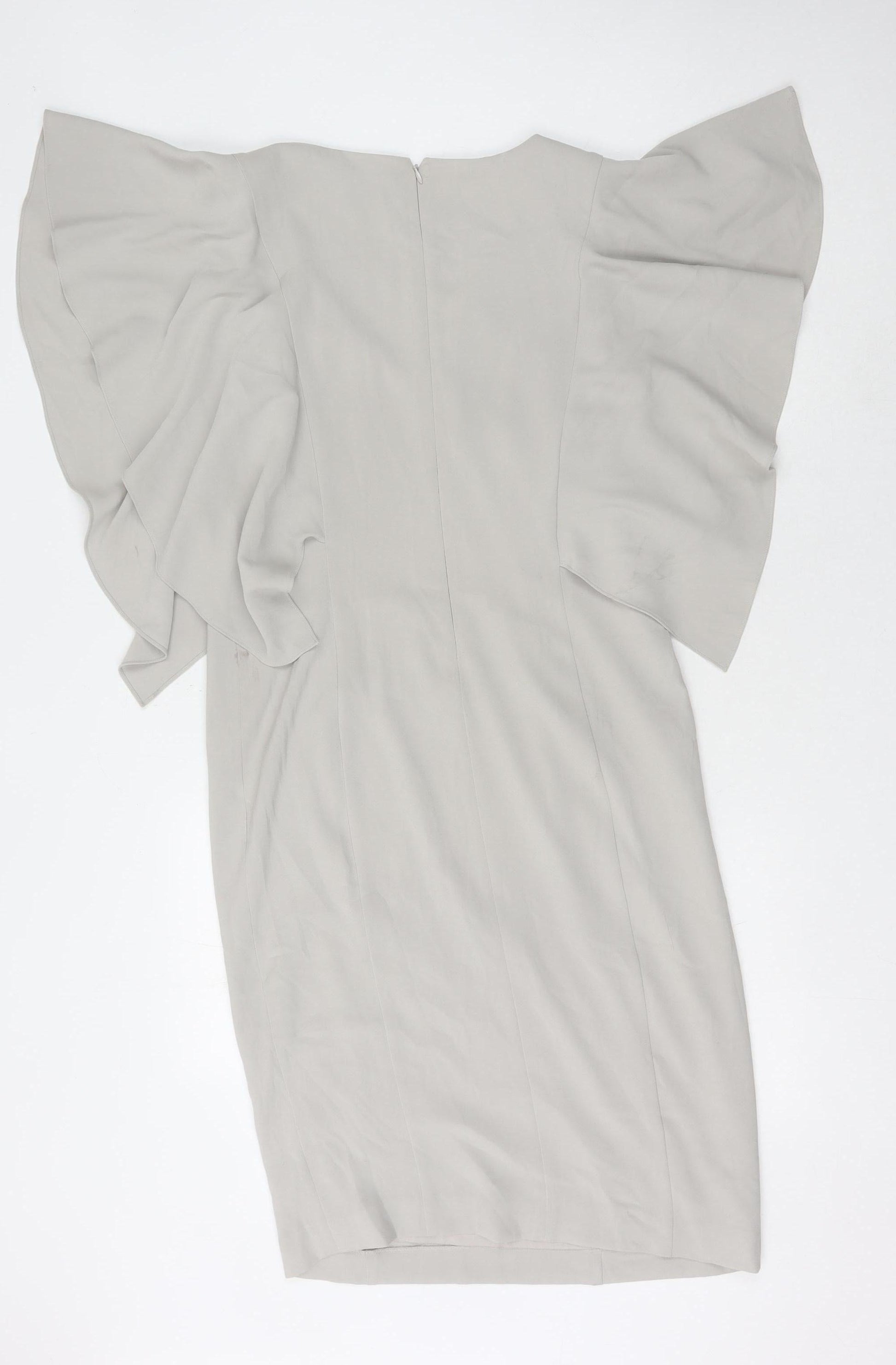 St. John Women's Grey Dress, Size 10, V-Neck, Elegant