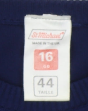 St Michael Blue Women's T-Shirt Size 16 Raglan Vintage