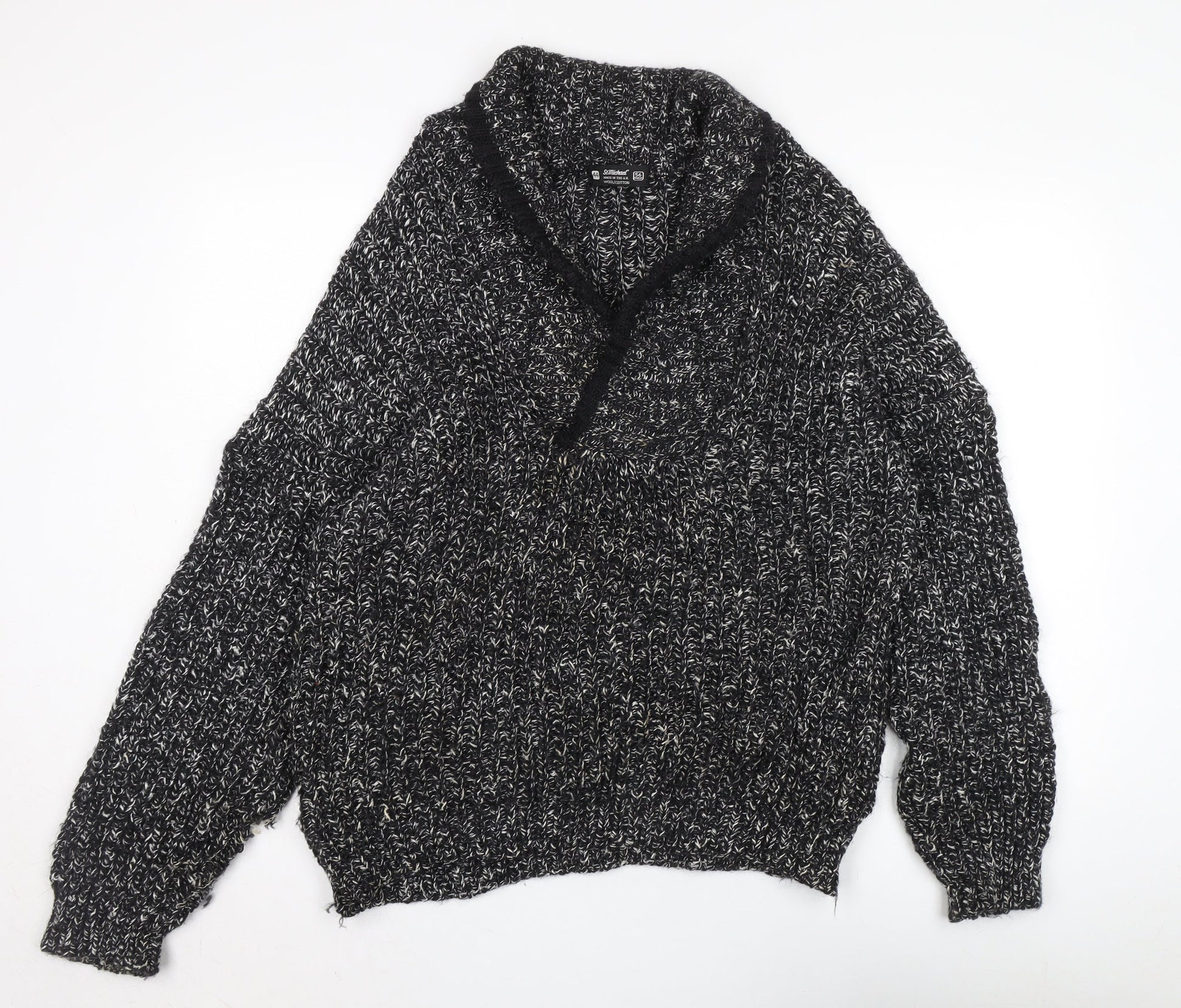 St Michael Men's Black Wool Pullover V-Neck Jumper