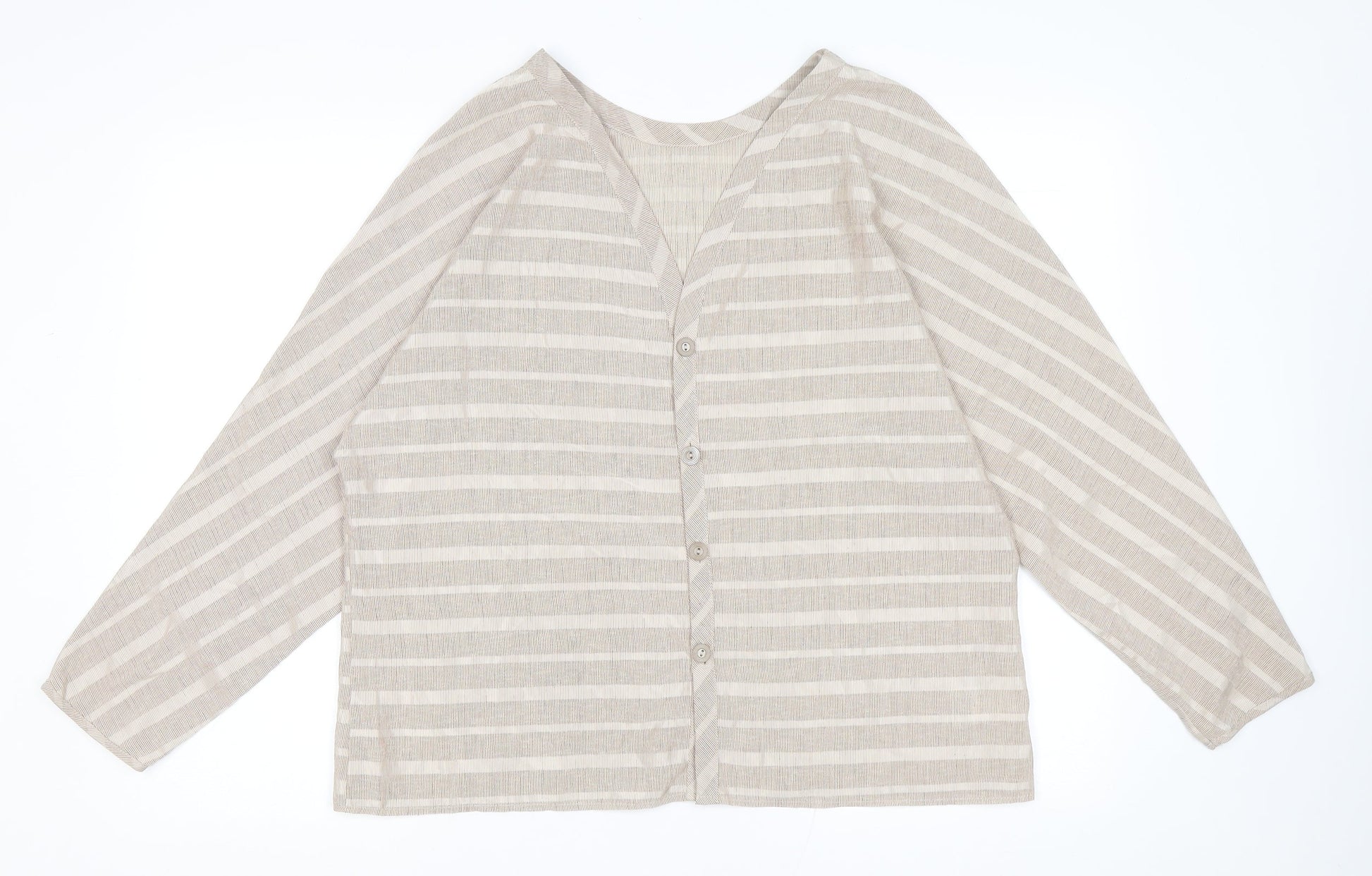 St Michael Womens Beige Striped Polyester Basic Button-Up Size 18 V-Neck