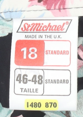 St Michael Women's Black Floral Pleated Skirt Size 18