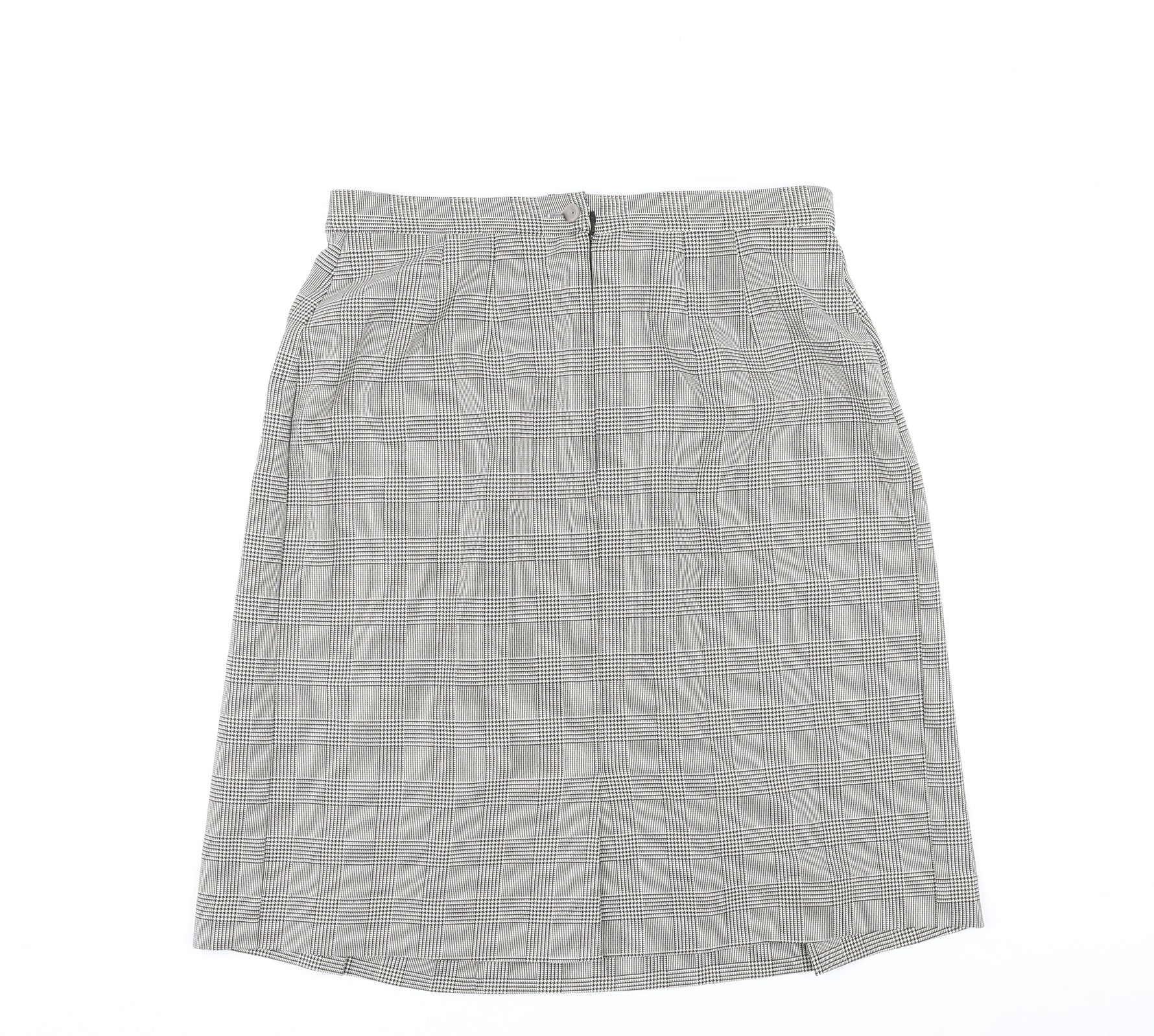 St Michael Womens Brown Plaid Polyester Pleated Skirt Size 18 Zip