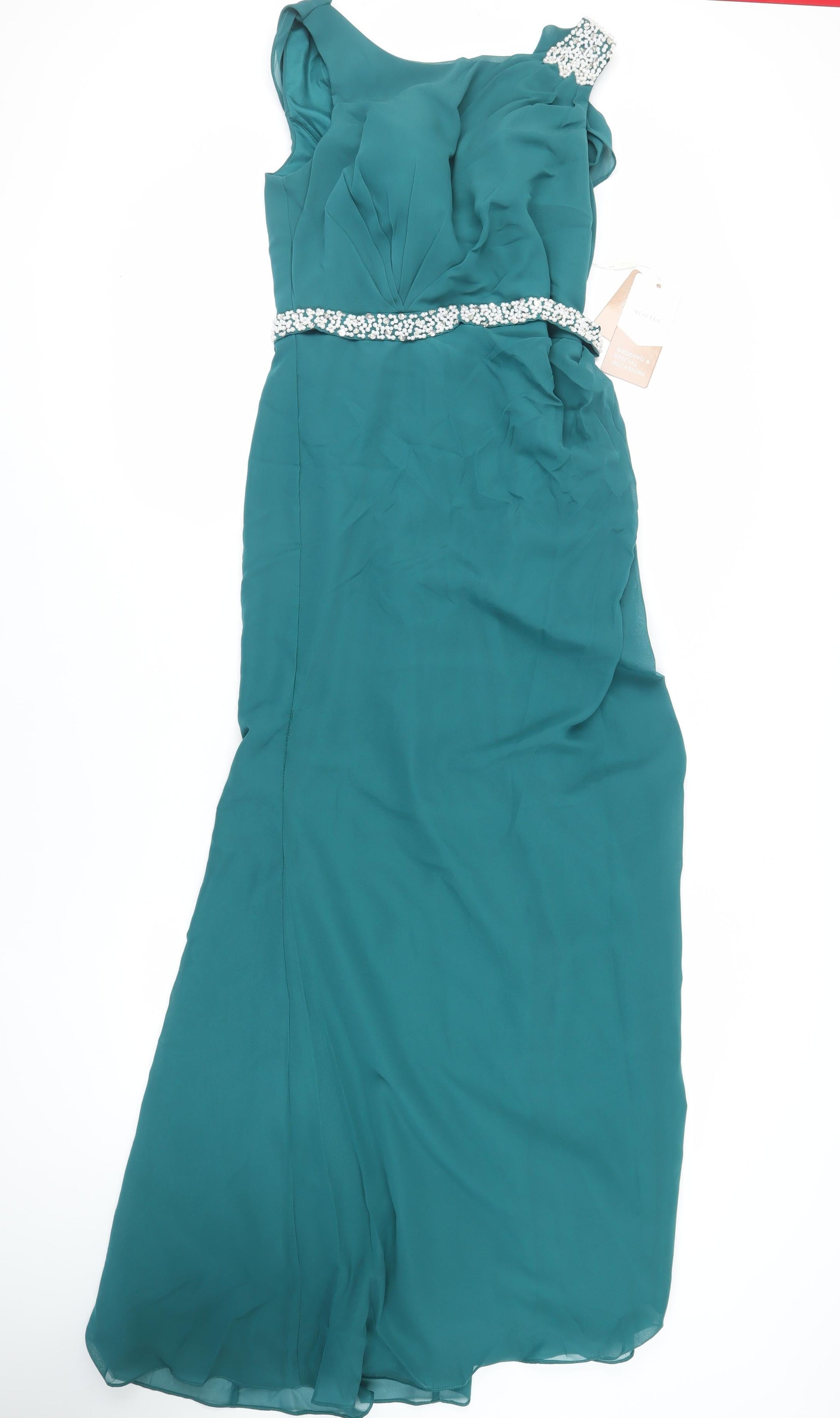 Stacees Womens Green Polyester Ball Gown Size 12 Boat Neck Zip - Beaded