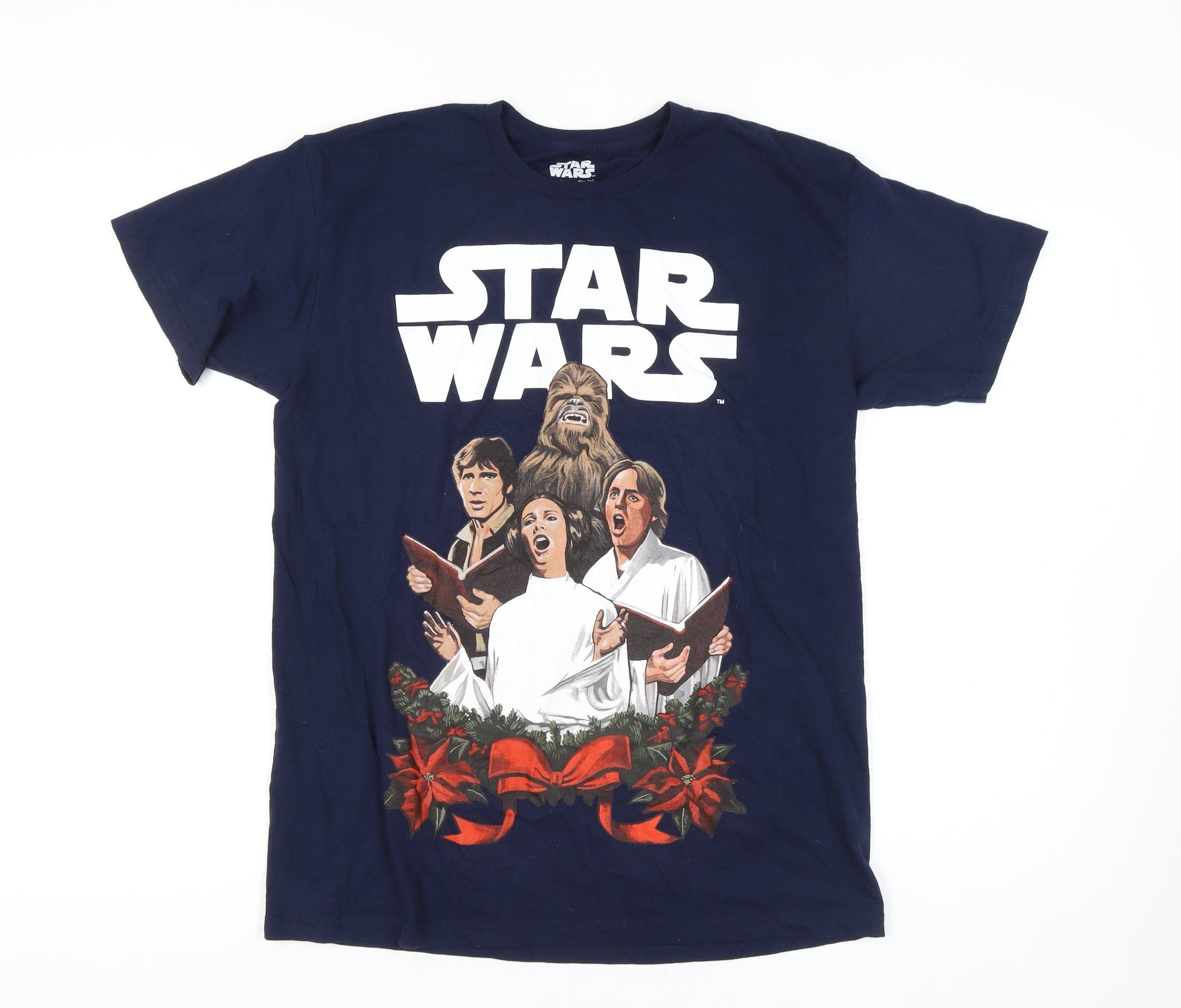 Star Wars Men's Blue Large Christmas Graphic T-Shirt