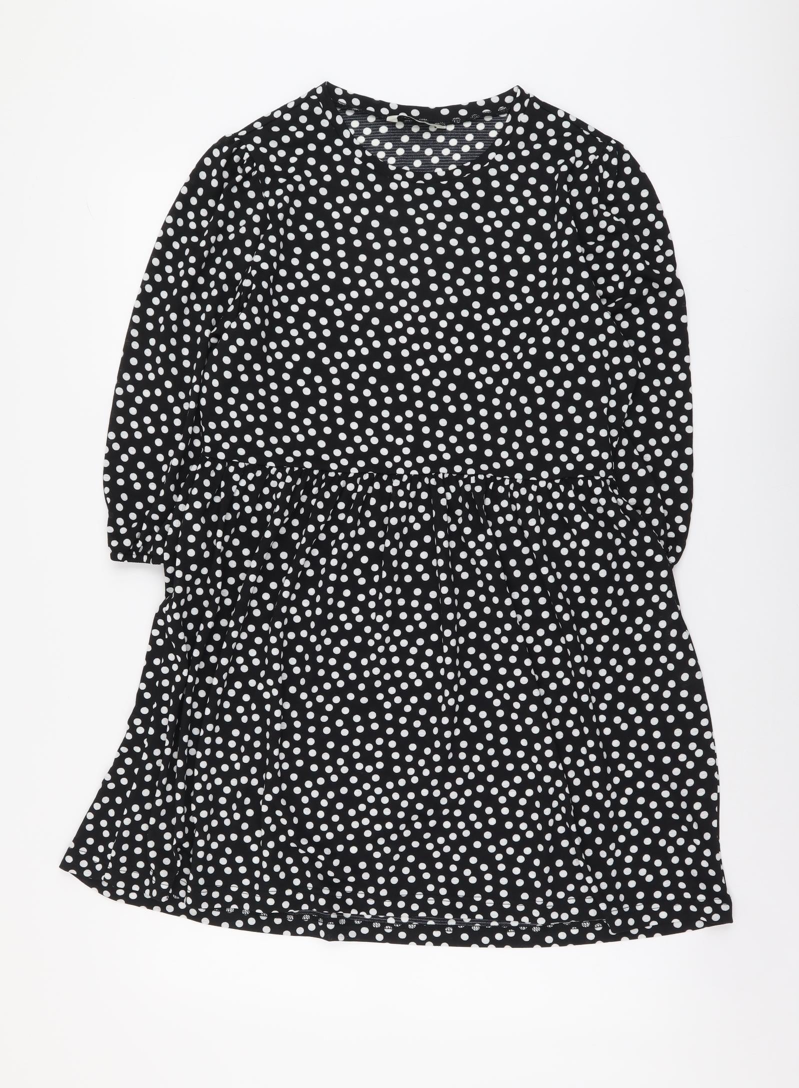 Stradivarius Womens Black Polka Dot Polyester Fit & Flare Size L Round Neck Pullover
