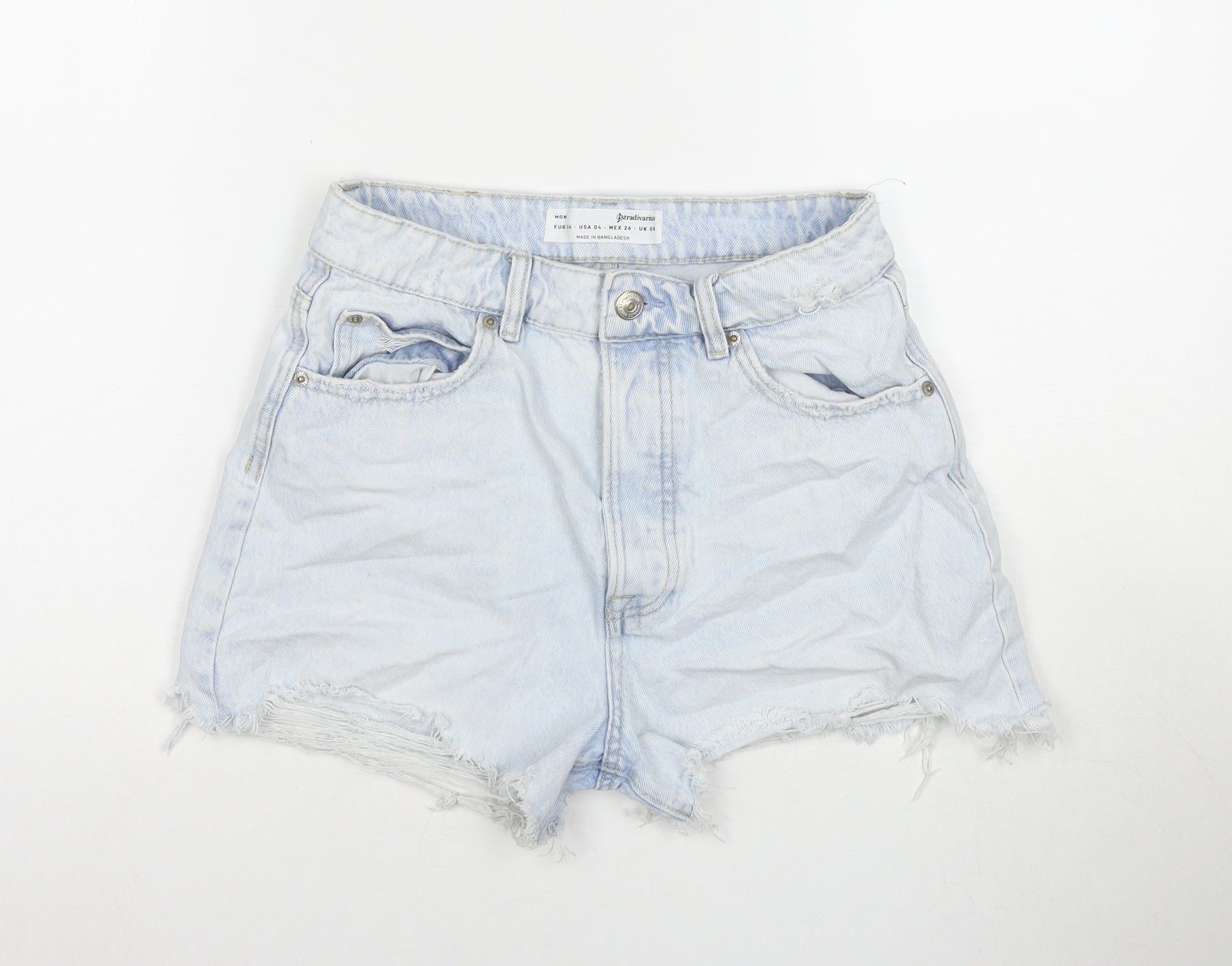 Stradivarius Womens Blue Cotton Cut-Off Shorts Size 8 L3 in Regular Zip