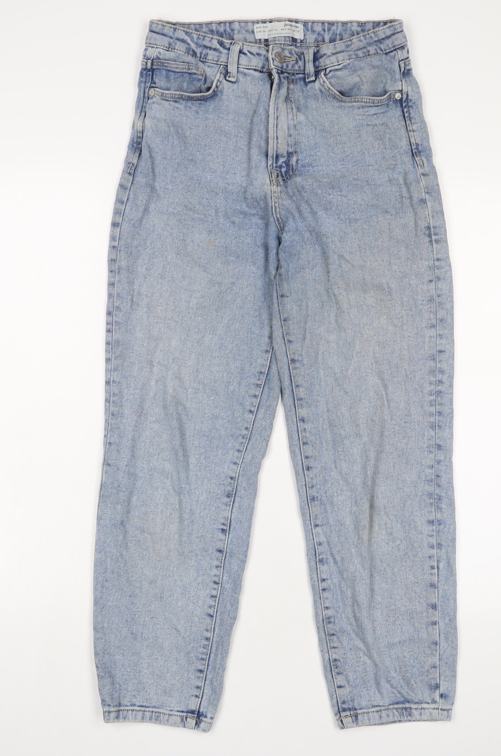 Stradivarius Womens Blue Cotton Straight Jeans Size 10 L26 in Regular Zip