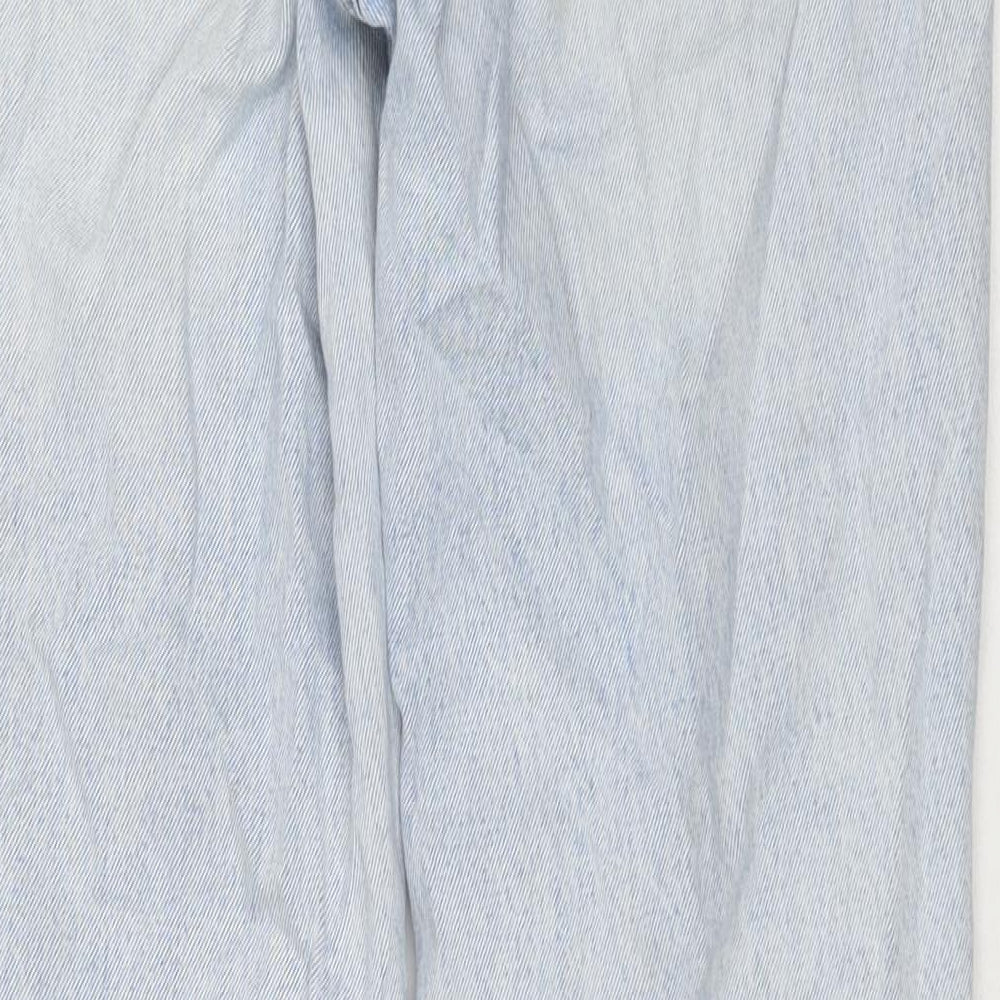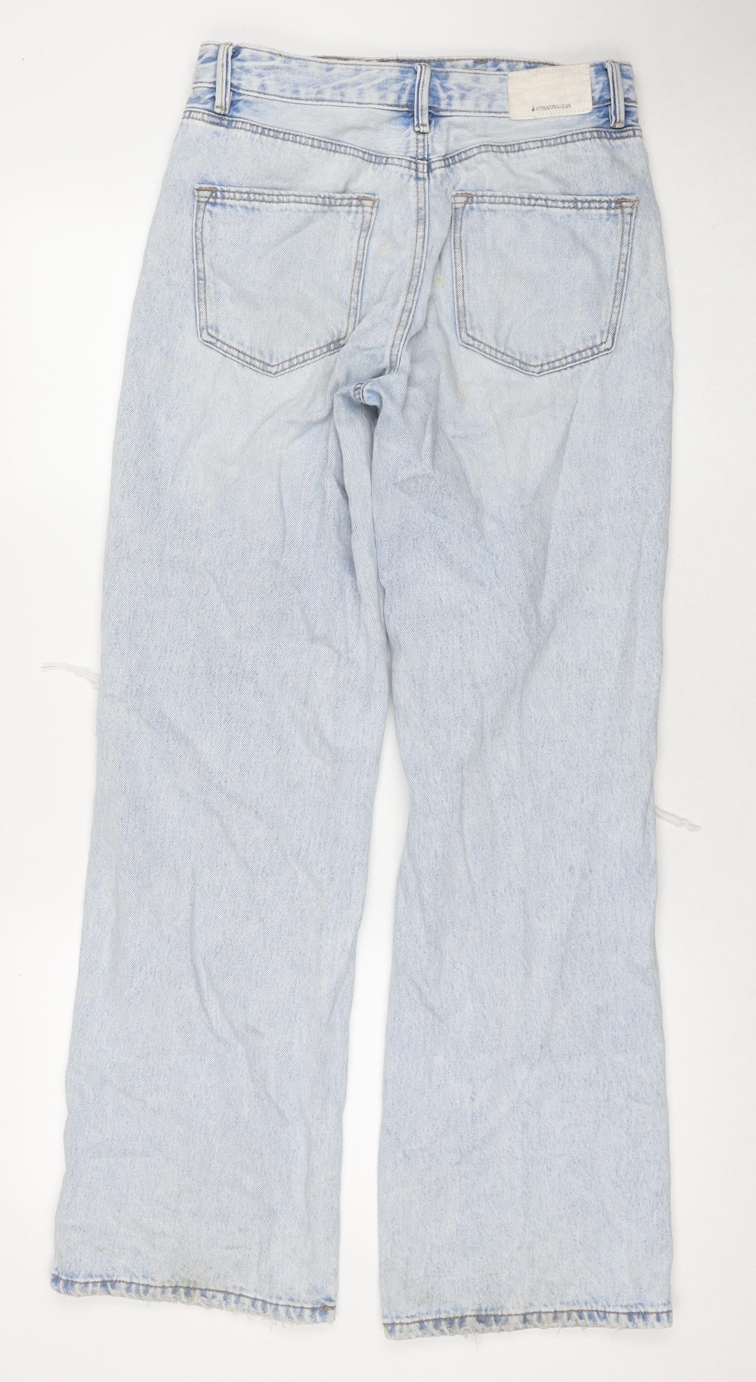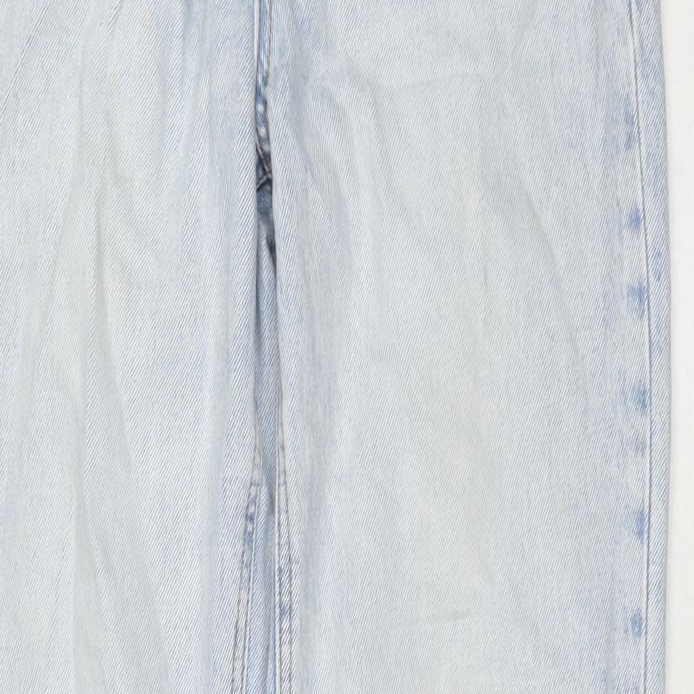 Stradivarius Womens Blue Cotton Wide-Leg Jeans Size 10 L32 in Regular Zip