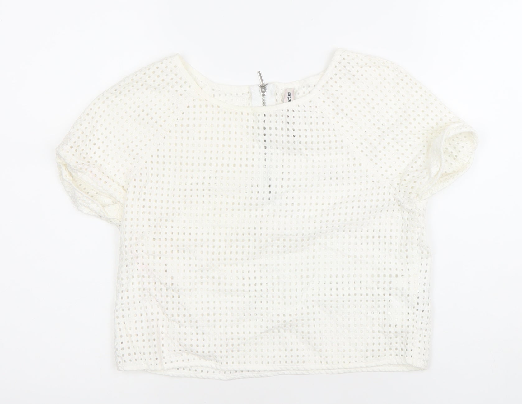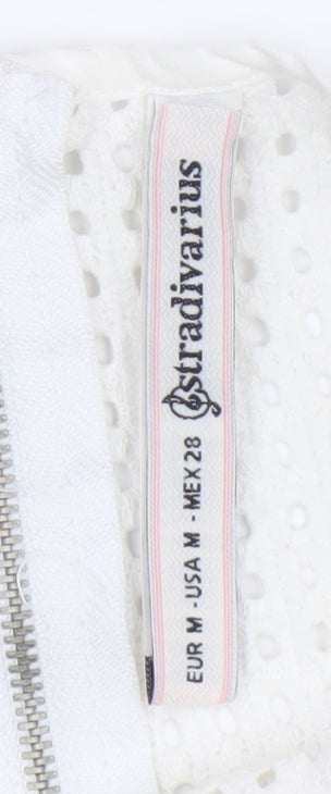 Stradivarius Womens White Cotton Lace Cropped Blouse Size 12
