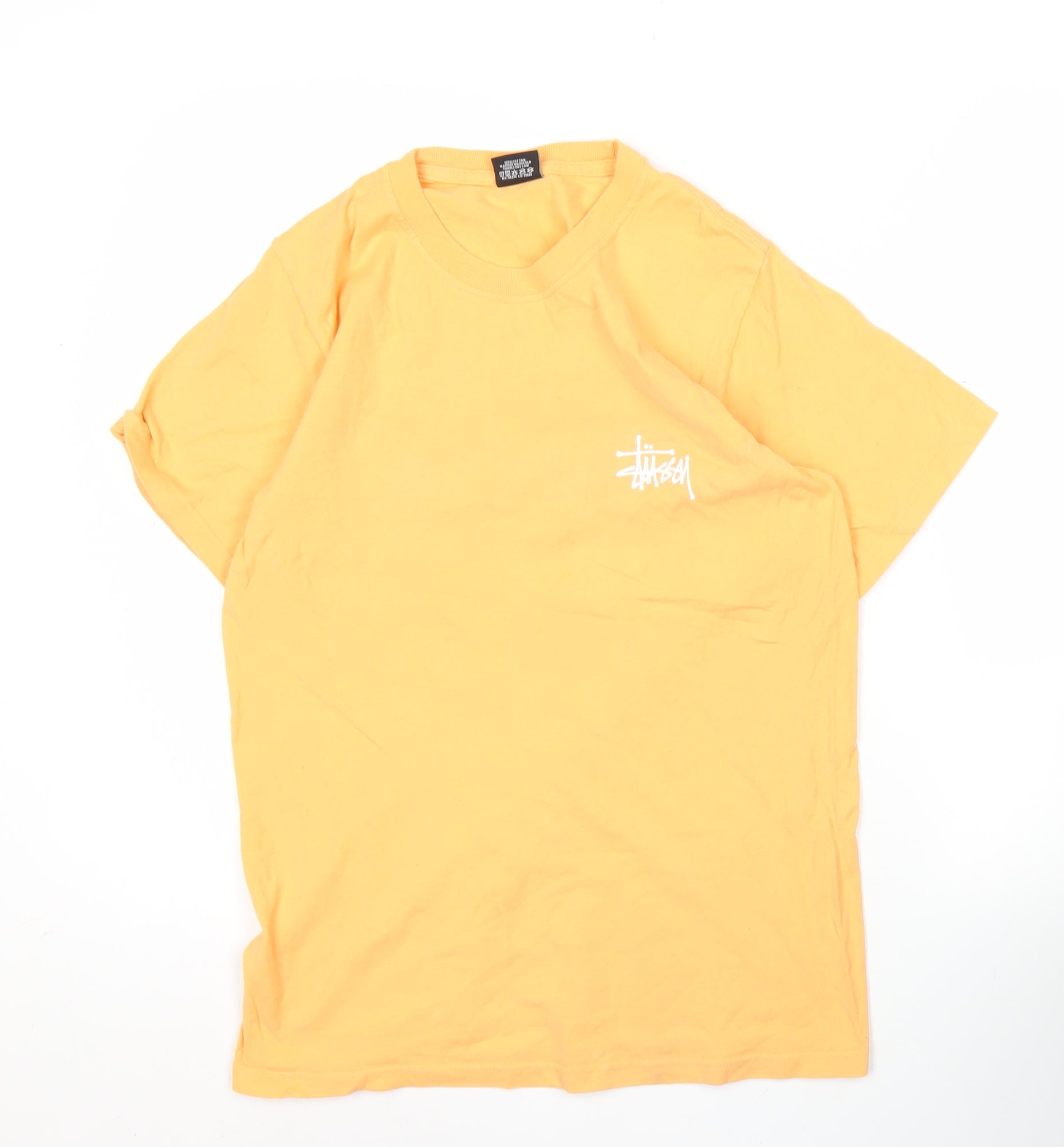 Stussy Men’s Yellow XL Graphic Logo Short Sleeve Cotton T-Shirt
