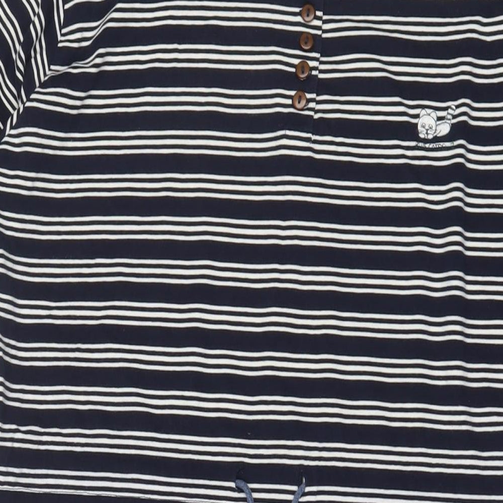 sundial Womens Blue Striped Polyester A-Line Size M Henley Button