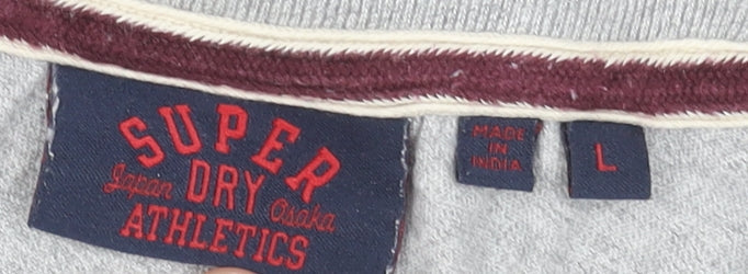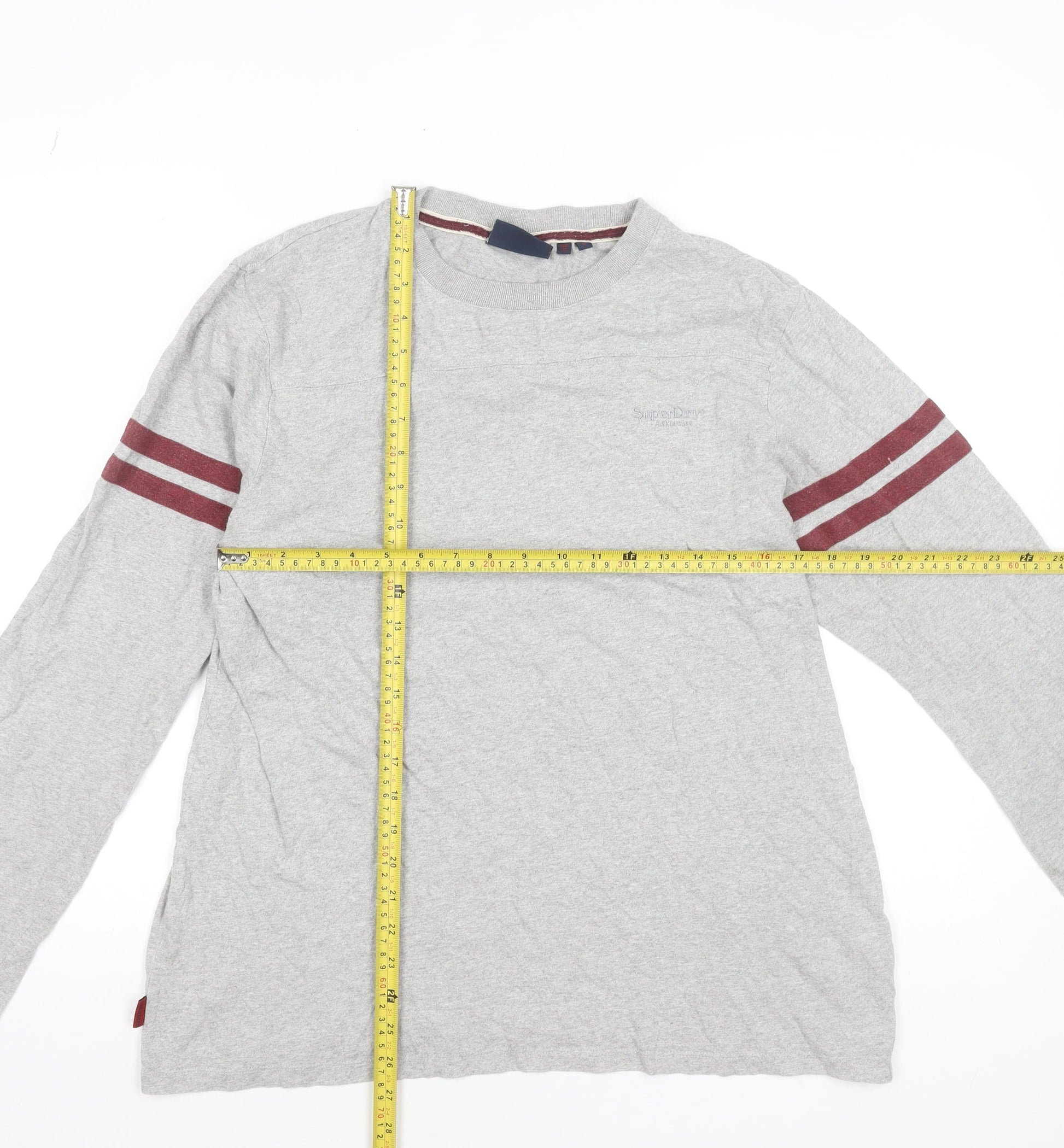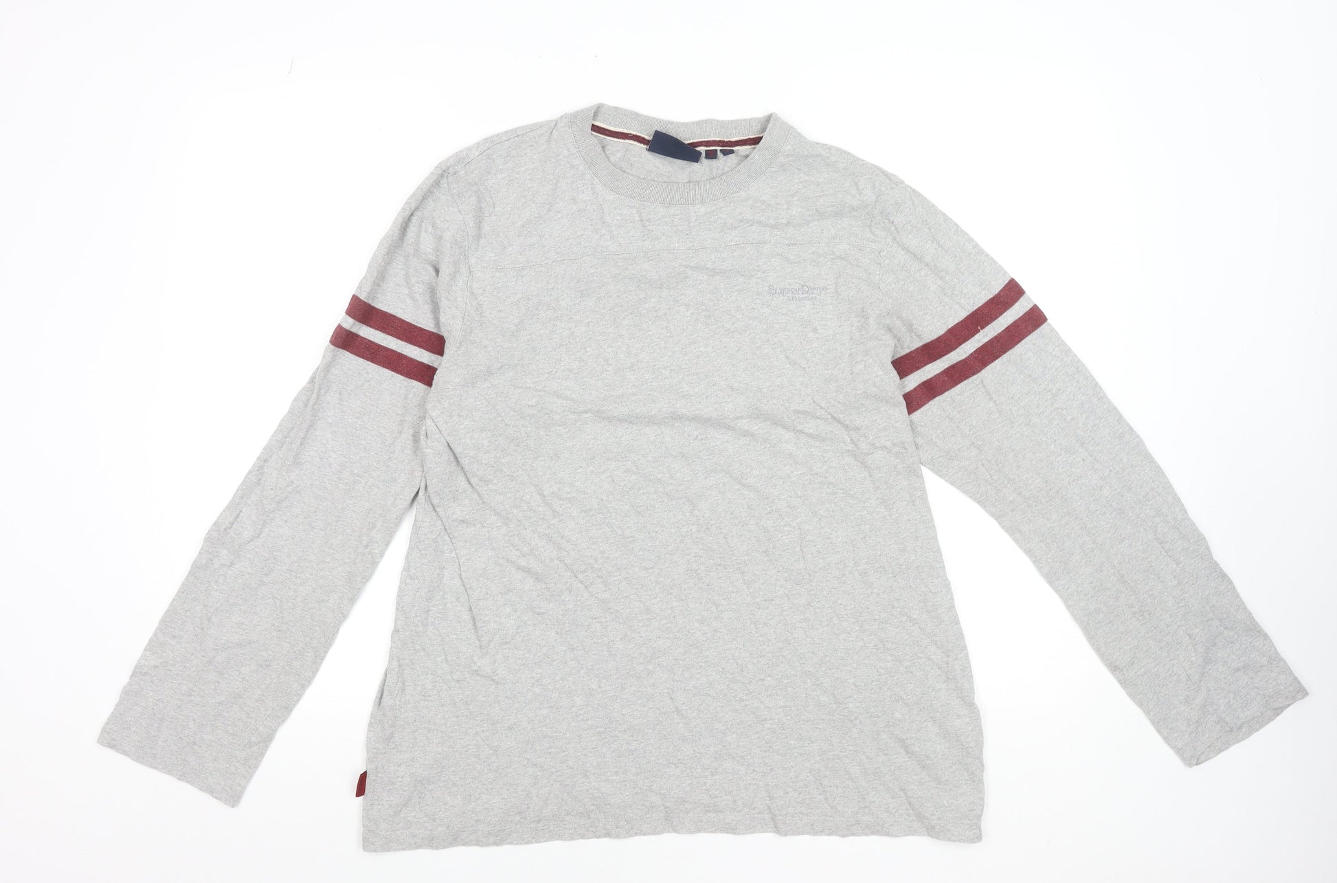 Superdry Men Grey Long Sleeve Crew Neck Cotton Sports T-Shirt L