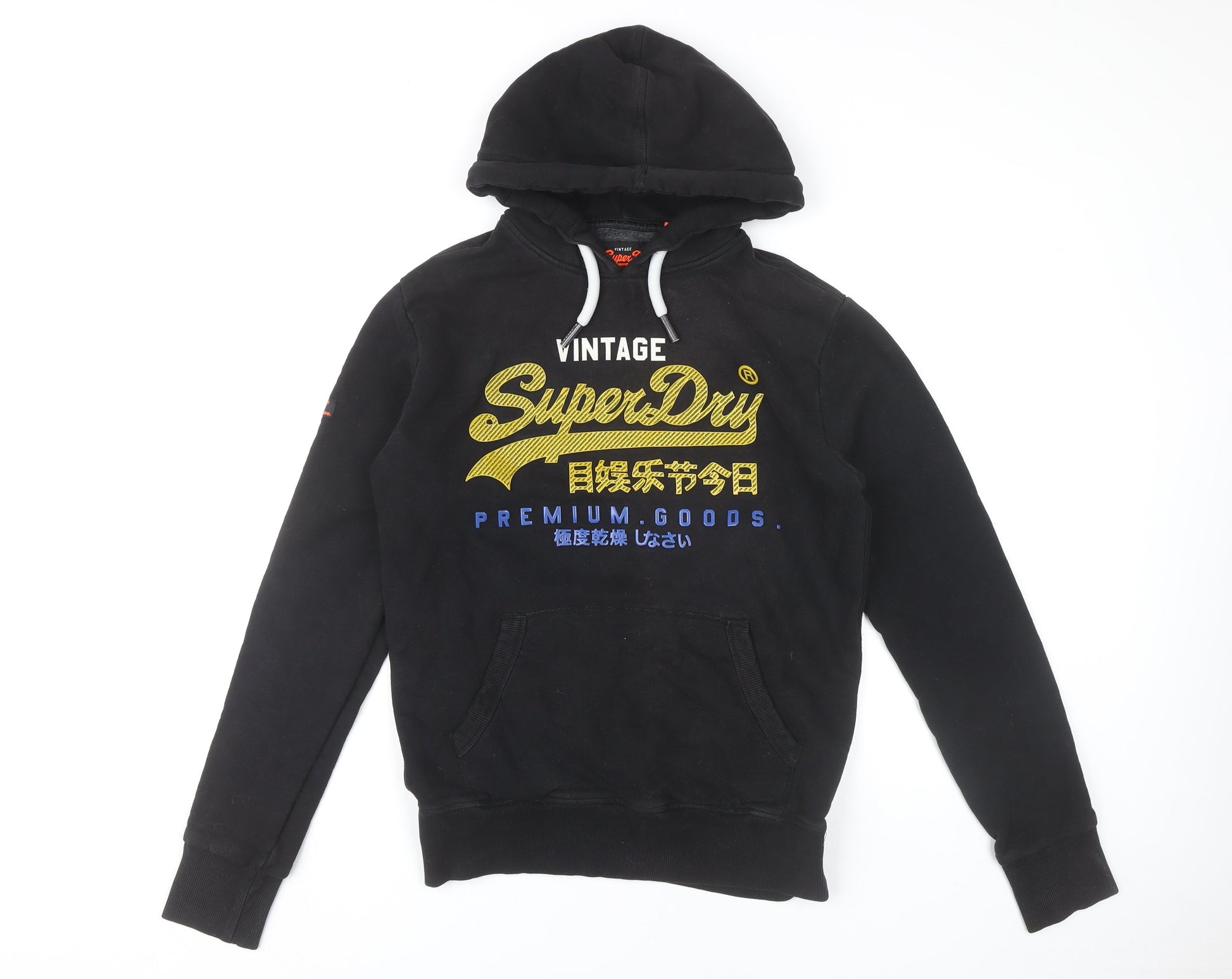 Superdry Men’s Black Pullover Hoodie S Graphic Logo Vintage Style