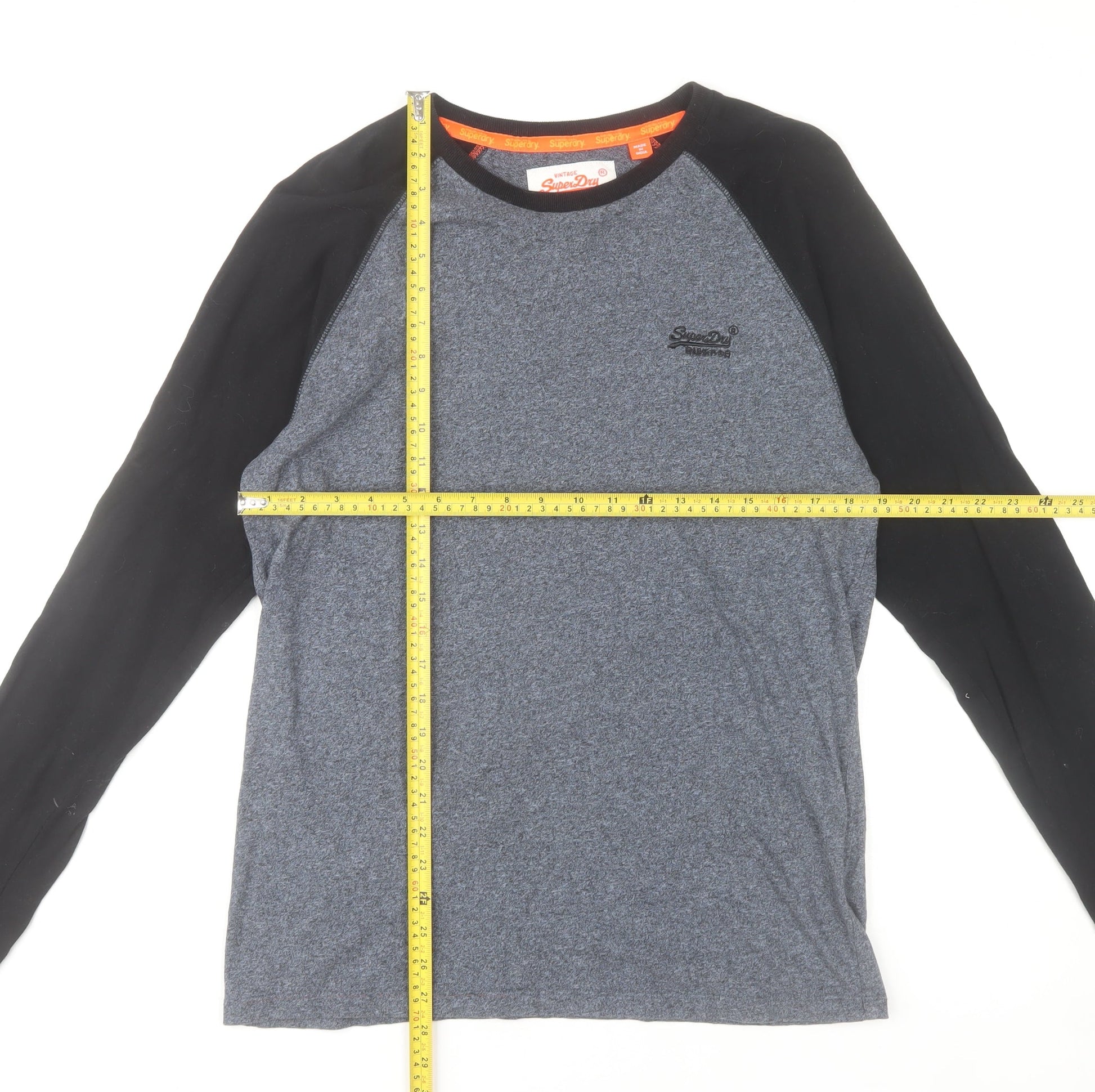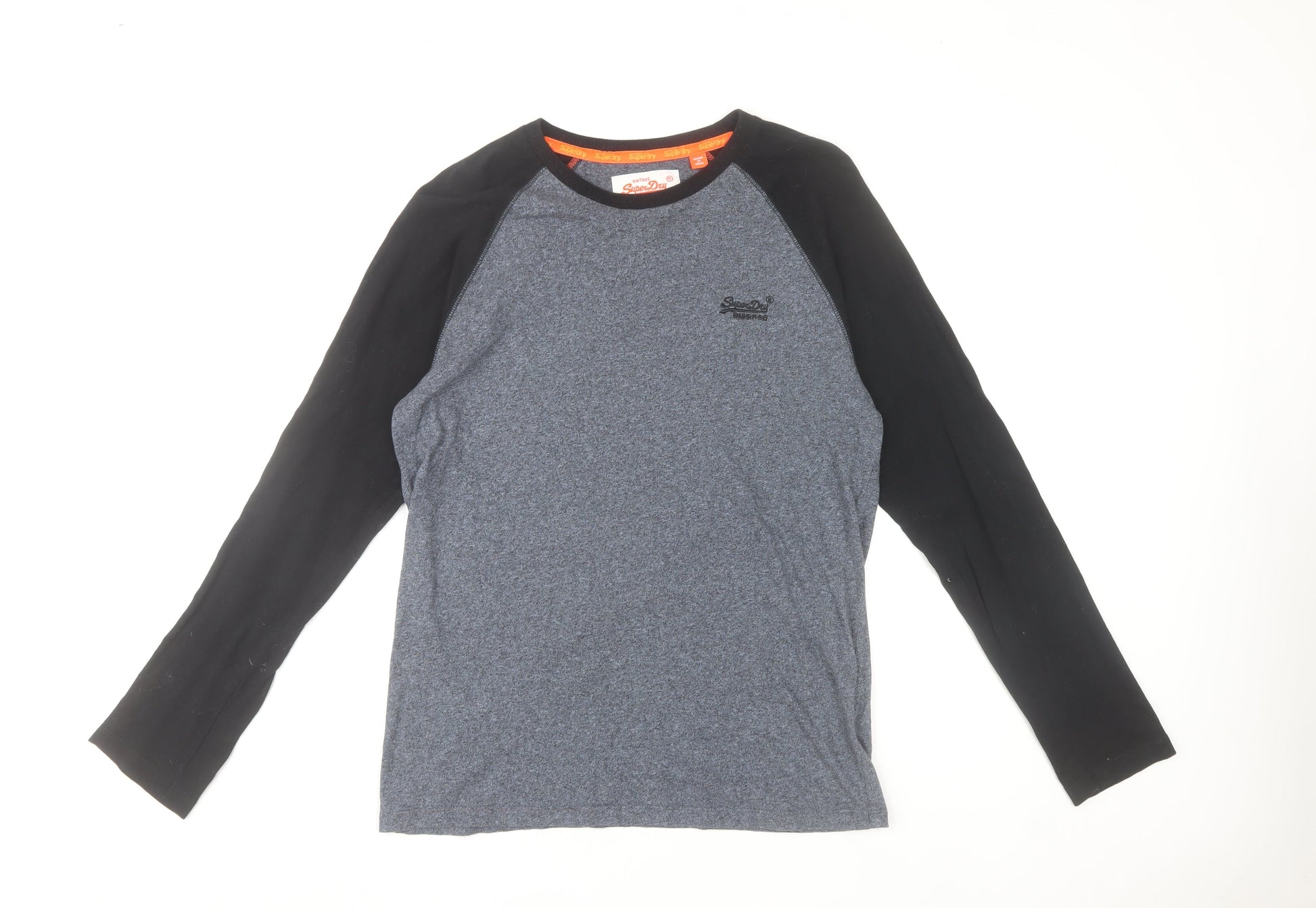 Superdry Men’s Blue Black Long Sleeve Cotton Logo T-Shirt Size L