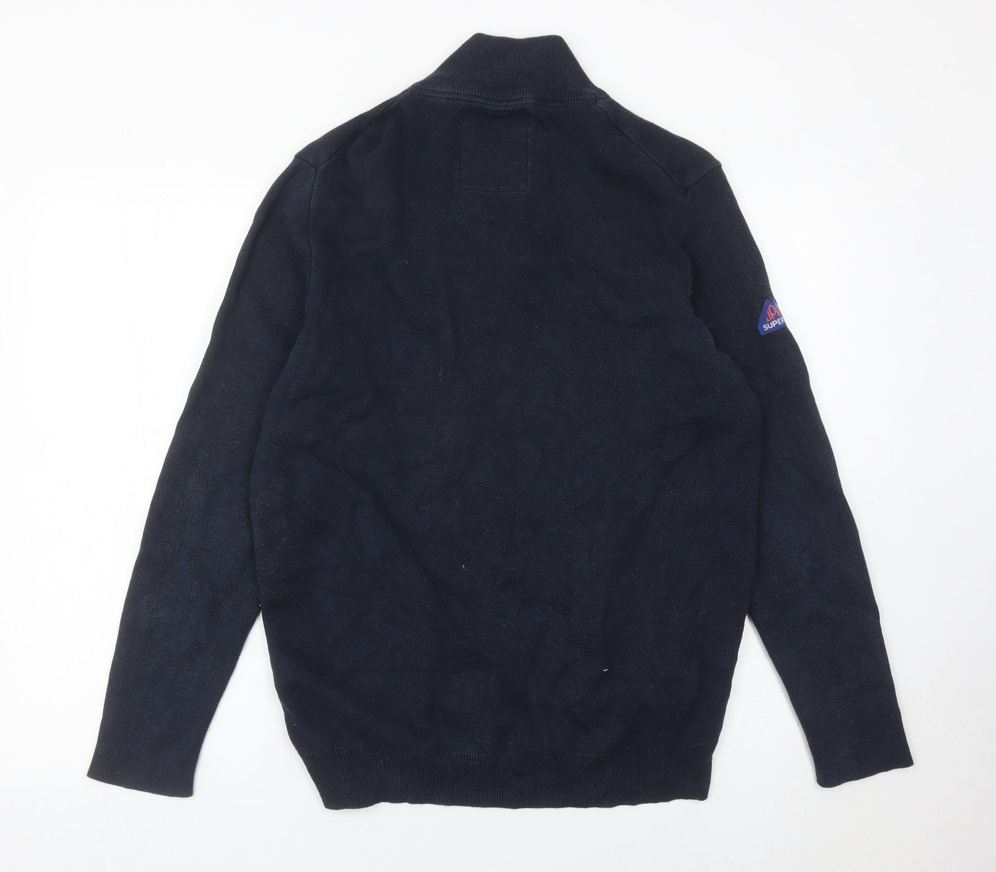 Superdry Men’s Blue XL 1/4 Zip Mock Neck Cotton Jumper