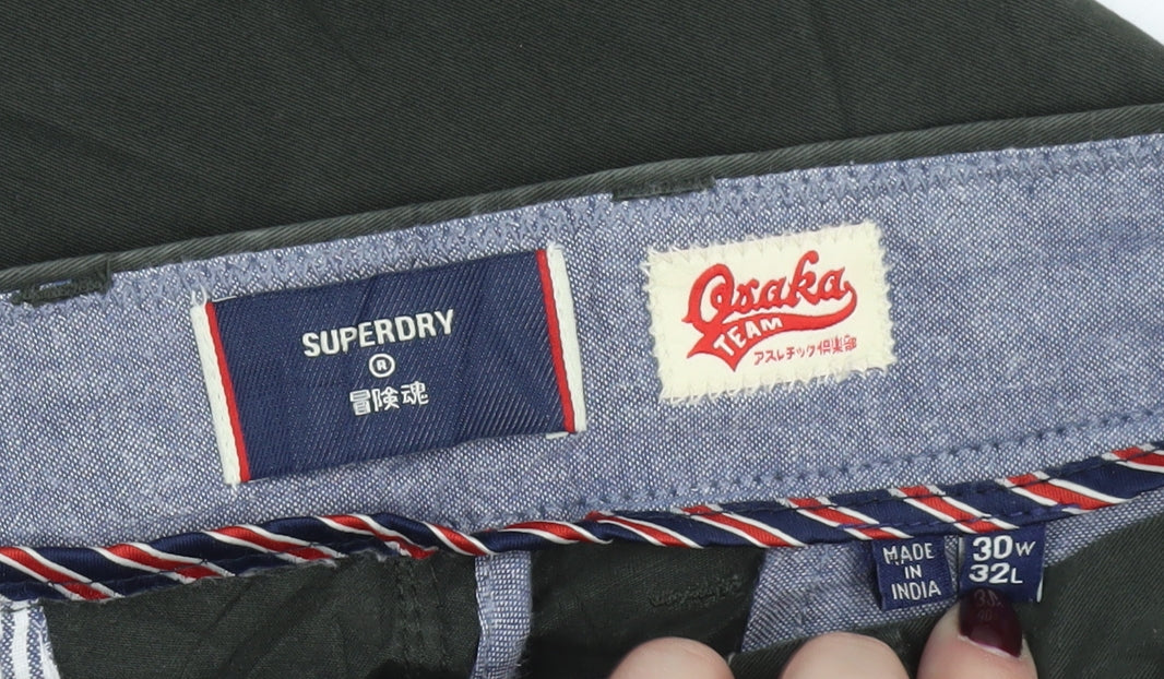 Superdry Men’s Green Slim Fit Chino Trousers 30W 32L