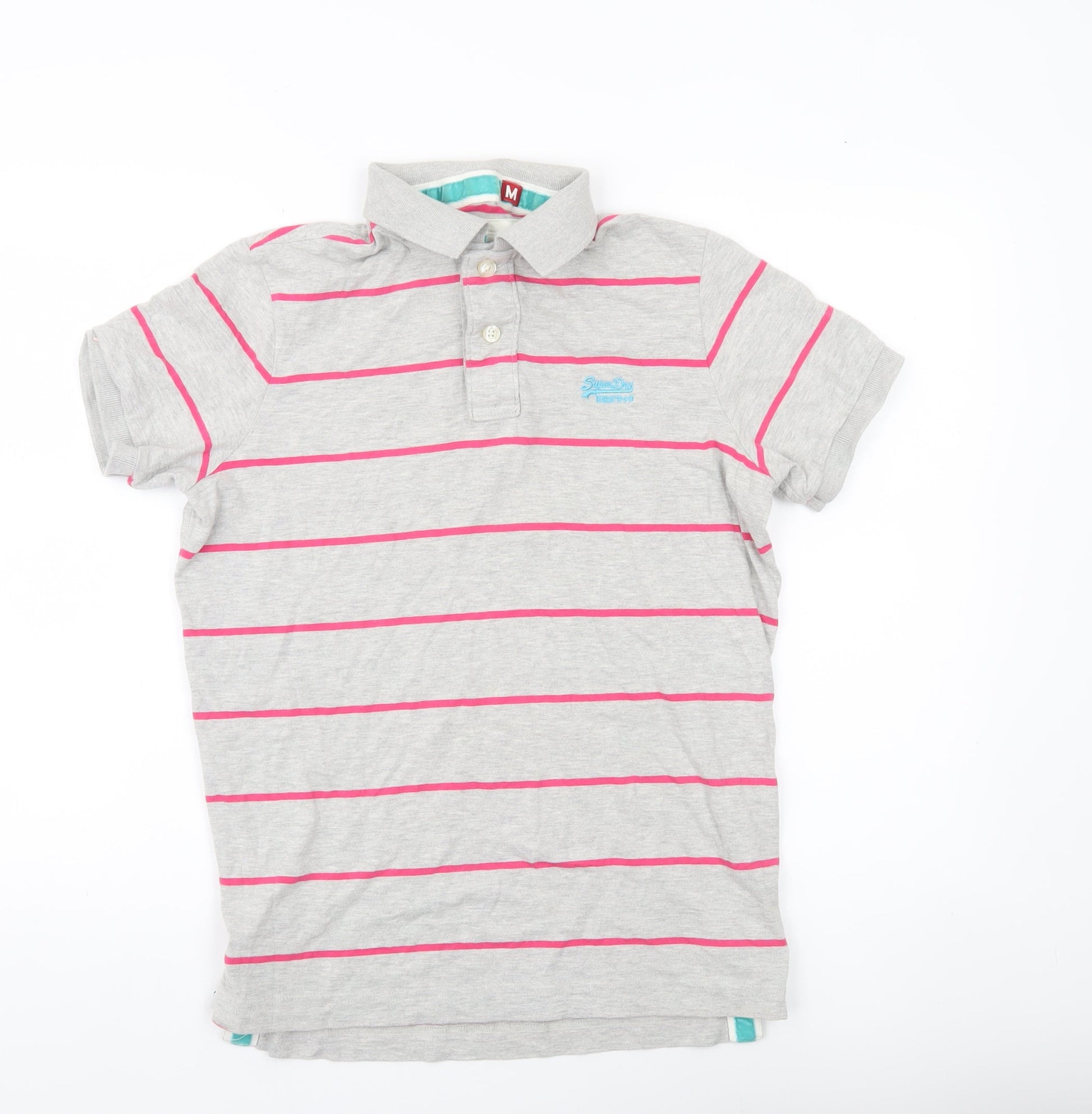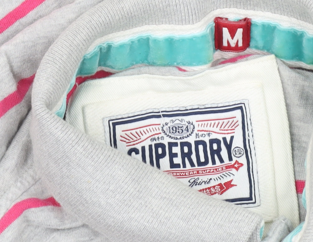Superdry Men’s Grey Striped Polo Shirt M Short Sleeve Cotton Blend