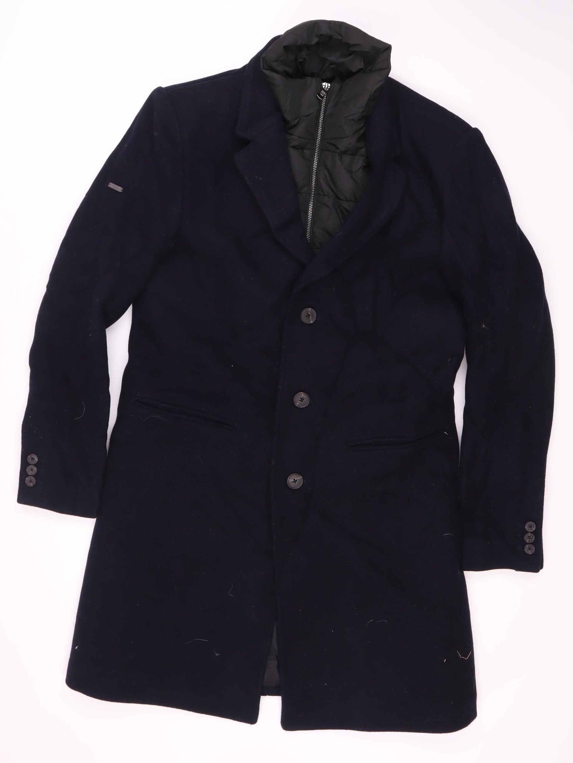 Superdry Men's Black Overcoat, Mid-Length, Size S