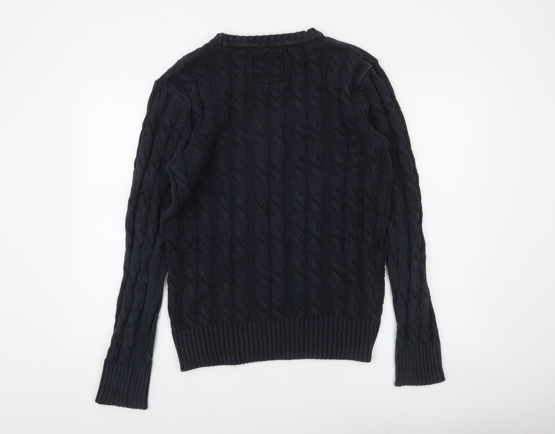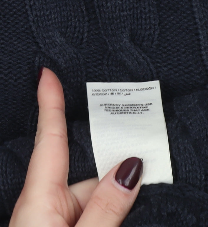 Superdry Men's Blue Cable-Knit Cotton Pullover Jumper Size M