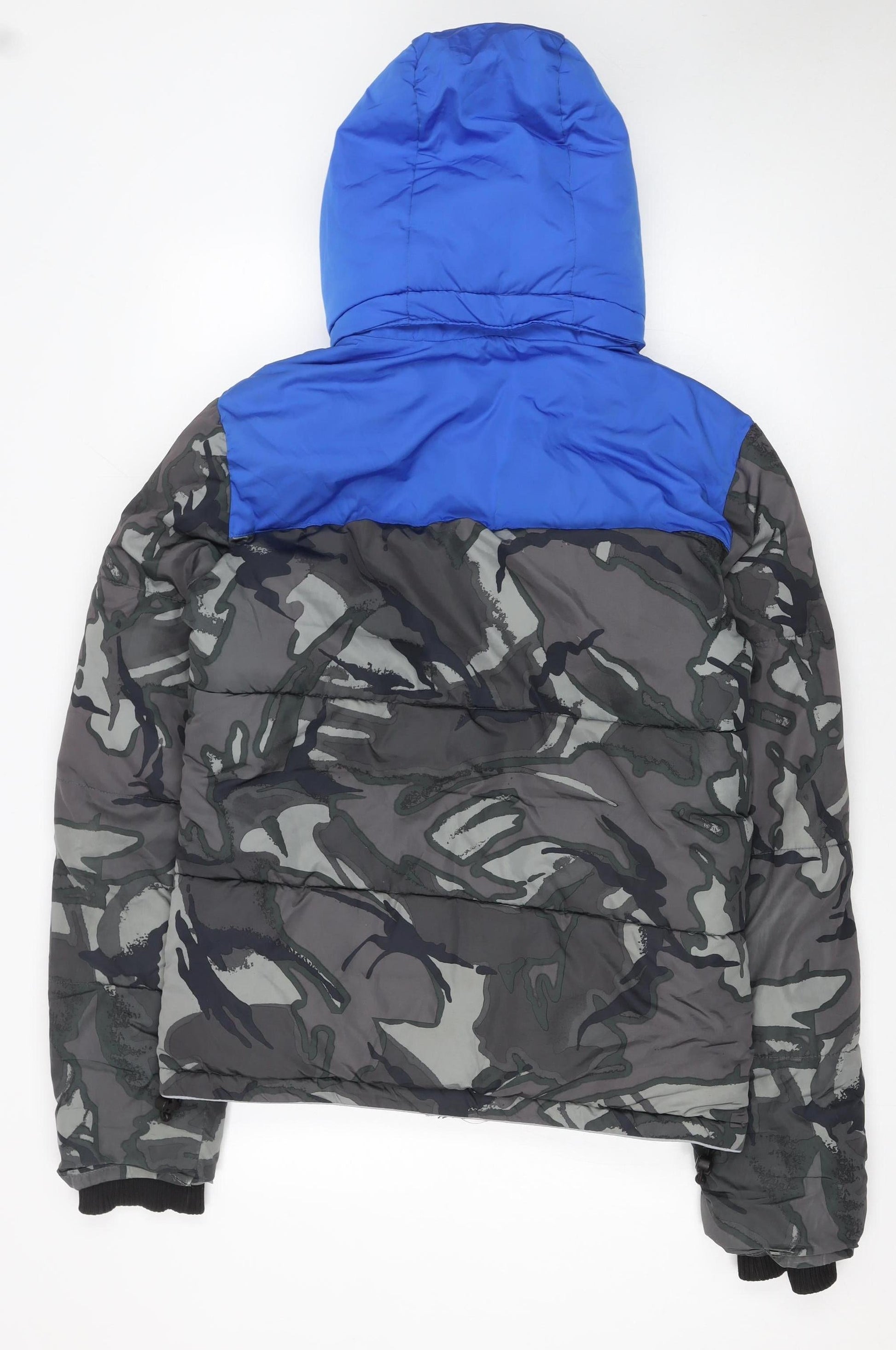 Superdry Men's Blue Camo Hooded Puffer Jacket Size S
