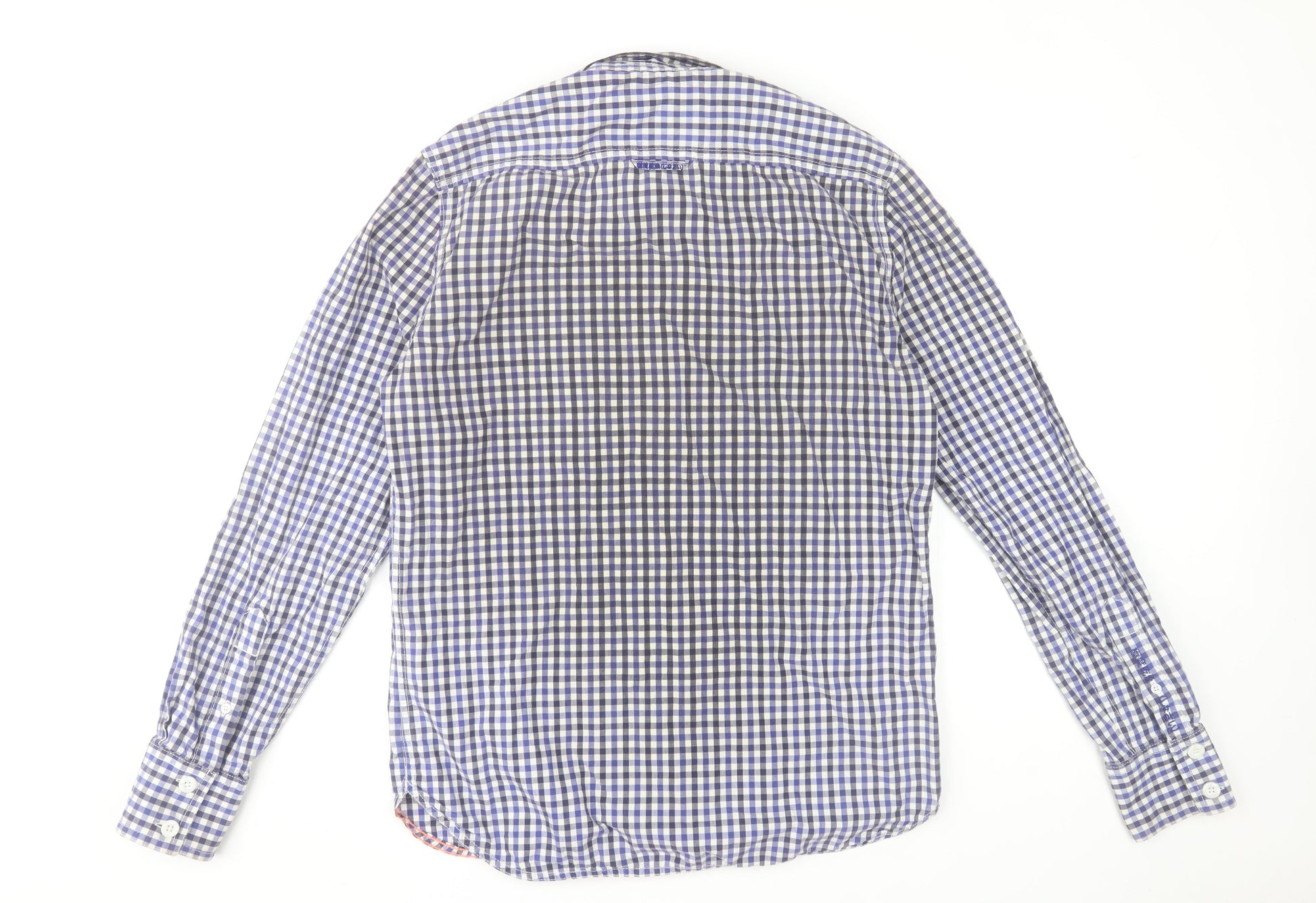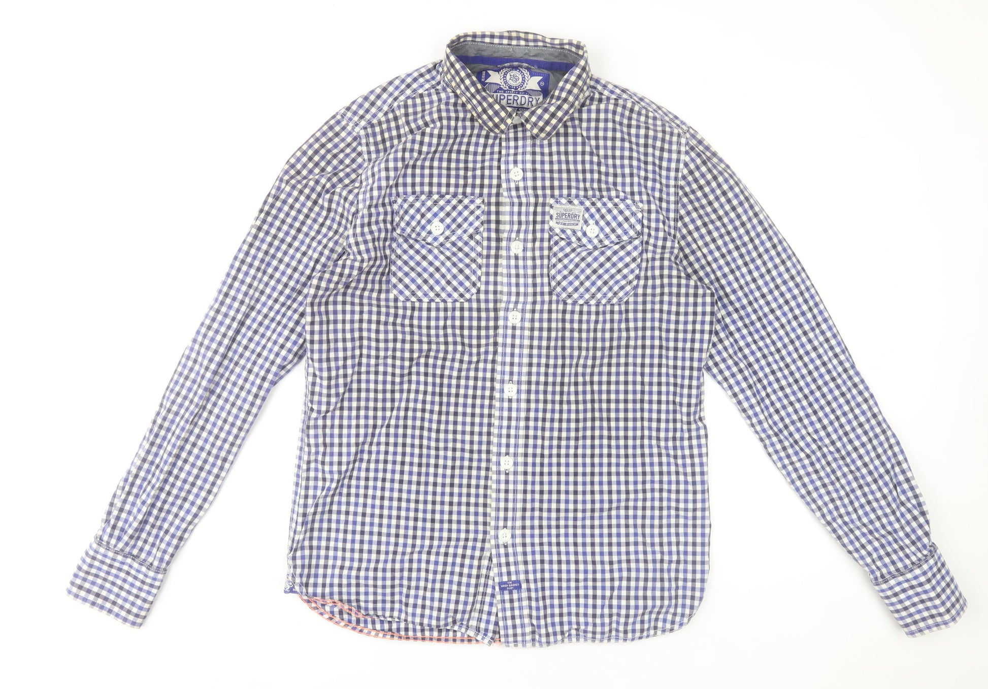 Superdry Men's Blue Check Long Sleeve Cotton Button-Up Shirt Size L