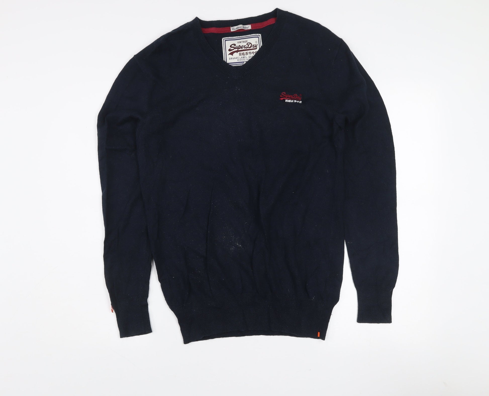 Superdry Men's Blue Cotton Cashmere V-Neck Jumper M