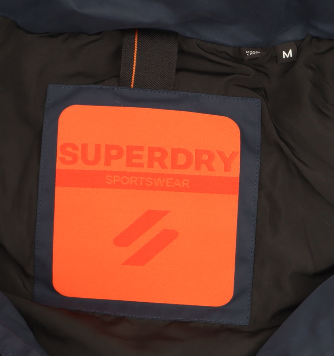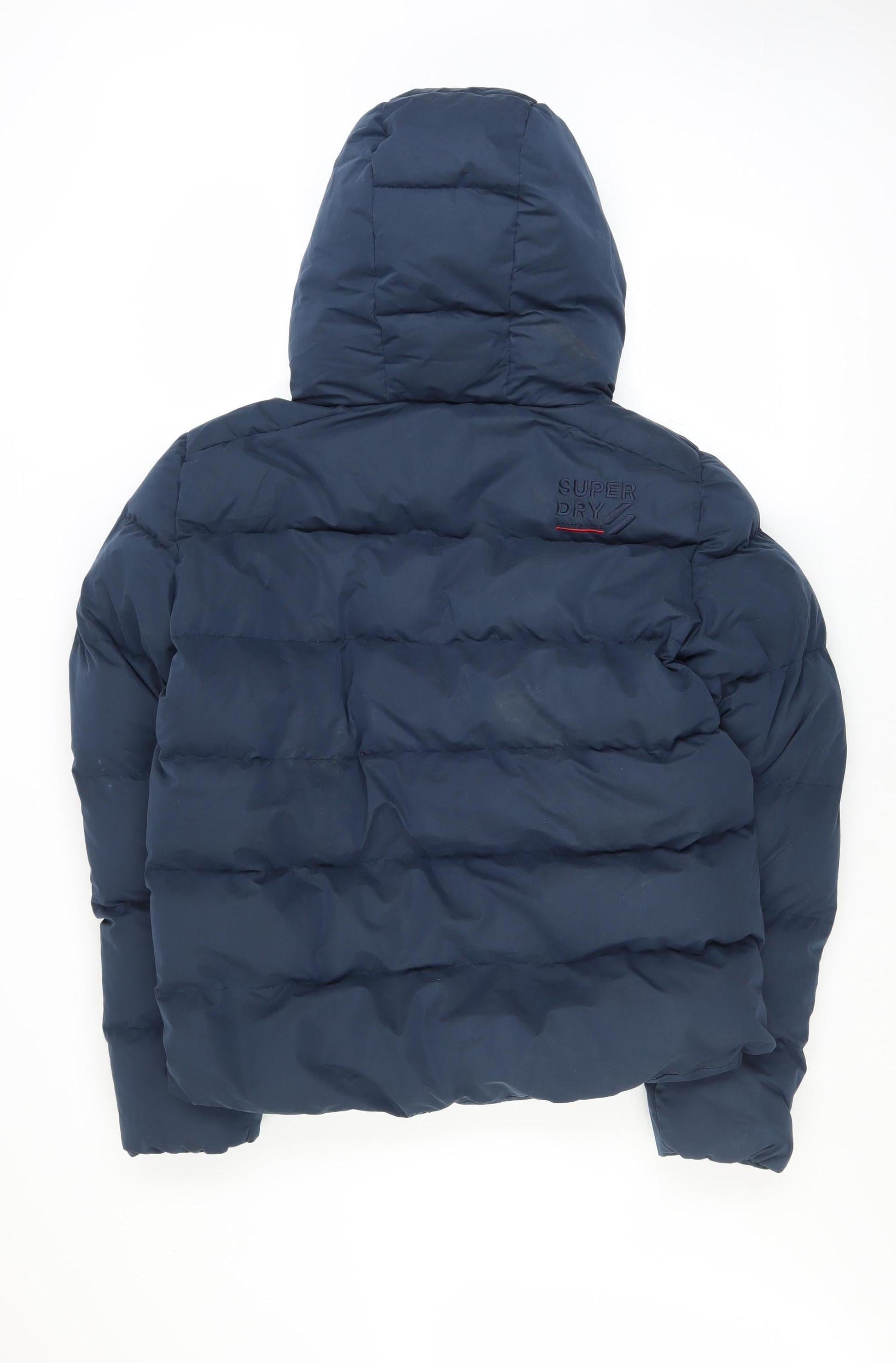 Superdry Mens Blue Hooded Puffer Jacket Size M Winter Casual