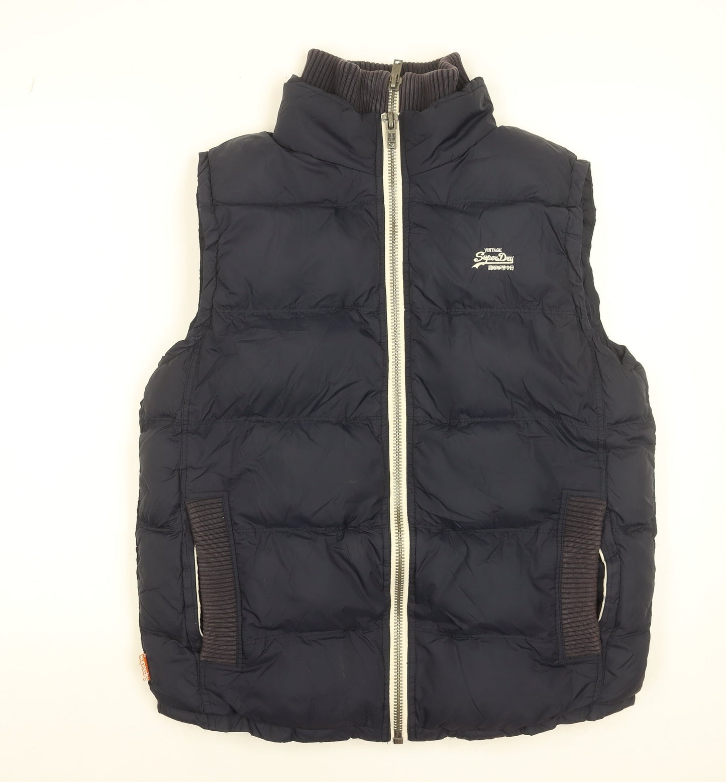 Superdry Men's Blue Puffer Waistcoat L Lined Zip Casual Gilet