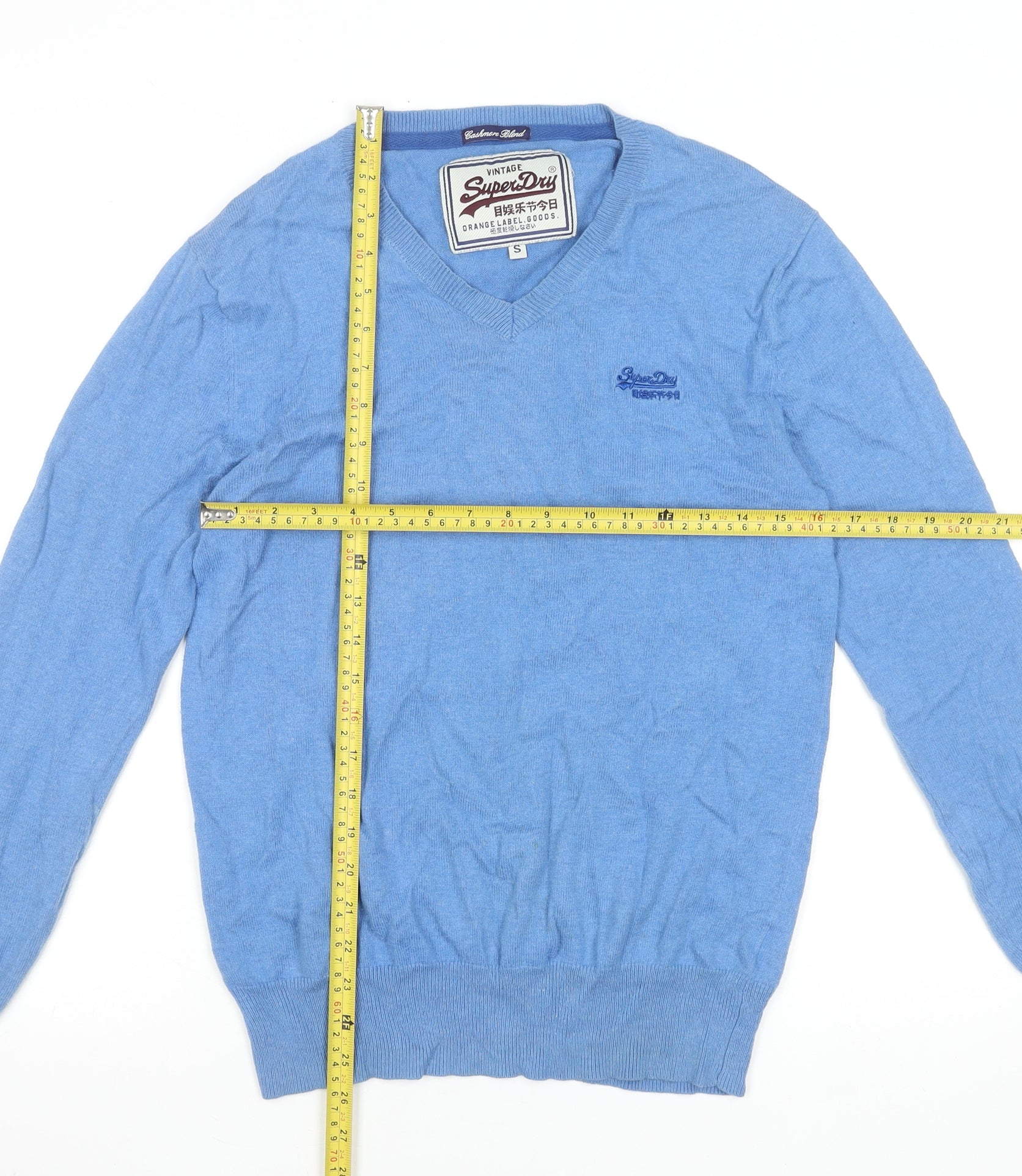 Superdry Men's Blue V-Neck Cotton Cashmere Jumper Size S