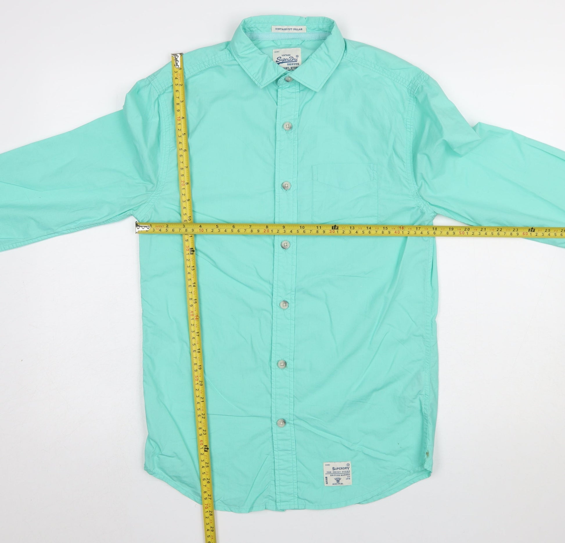 Superdry Men's Green Long Sleeve Button-Up Cotton Shirt Size S