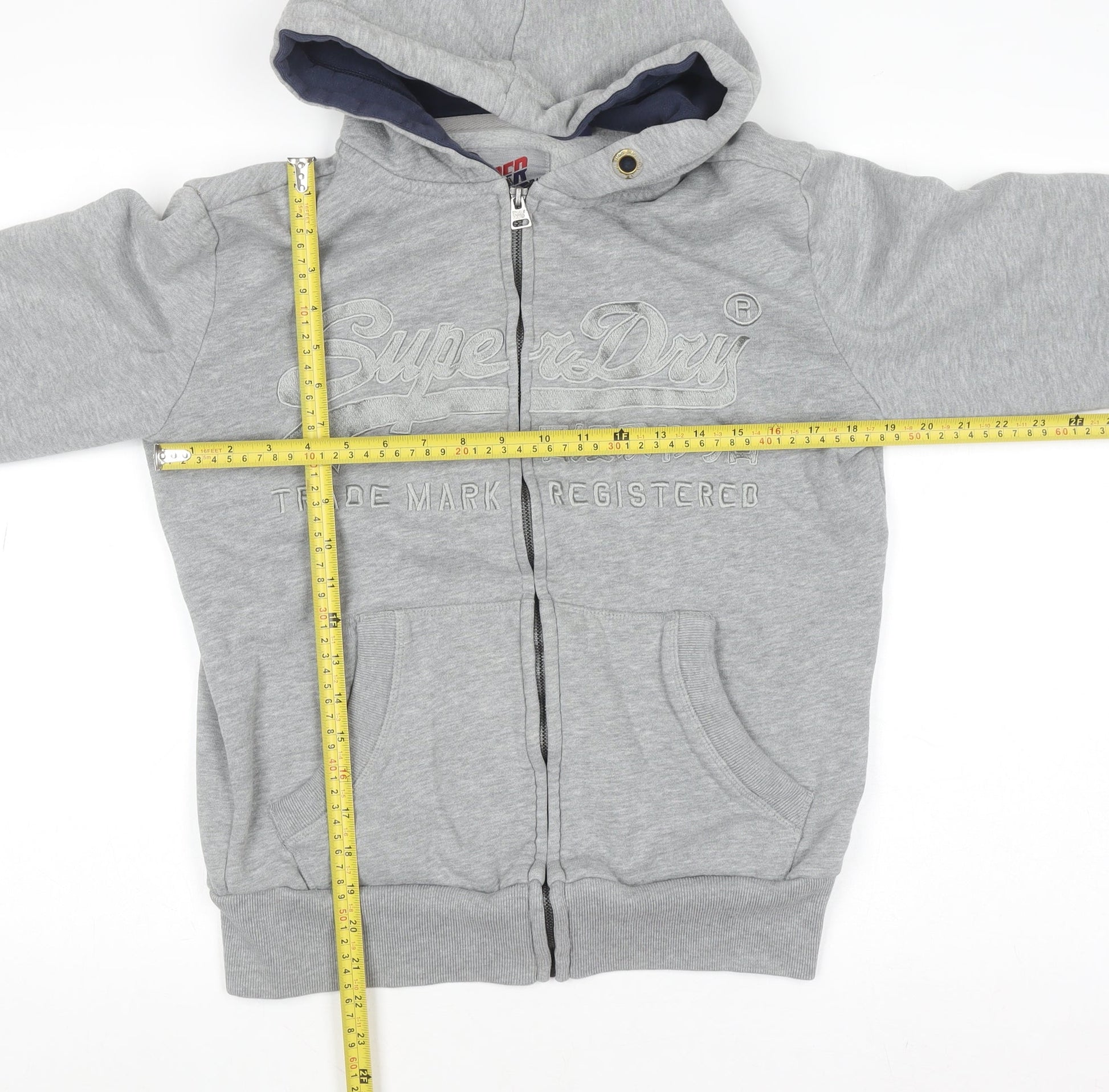 Superdry Men's Grey Full Zip Hoodie Medium Embroidered Logo