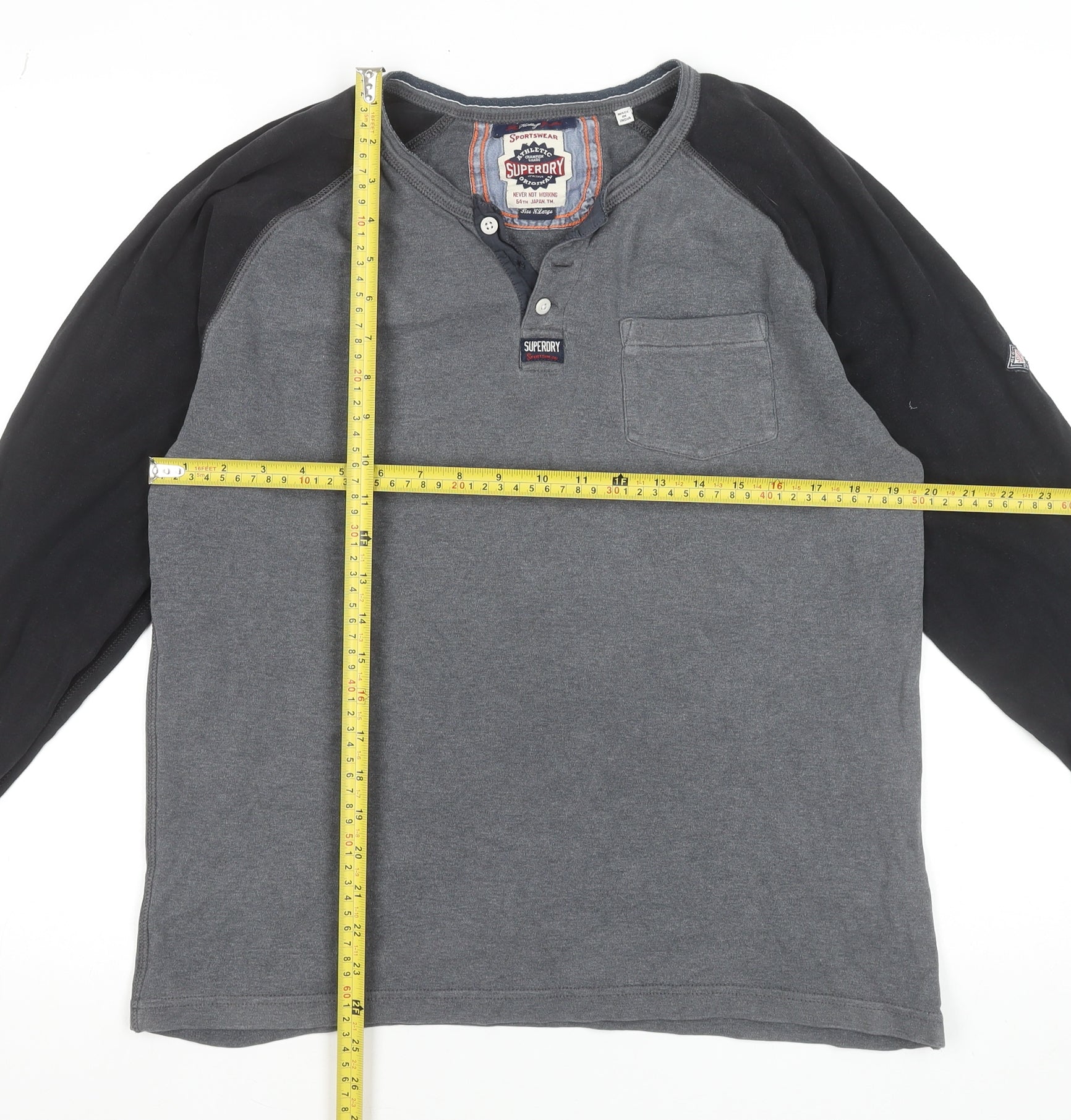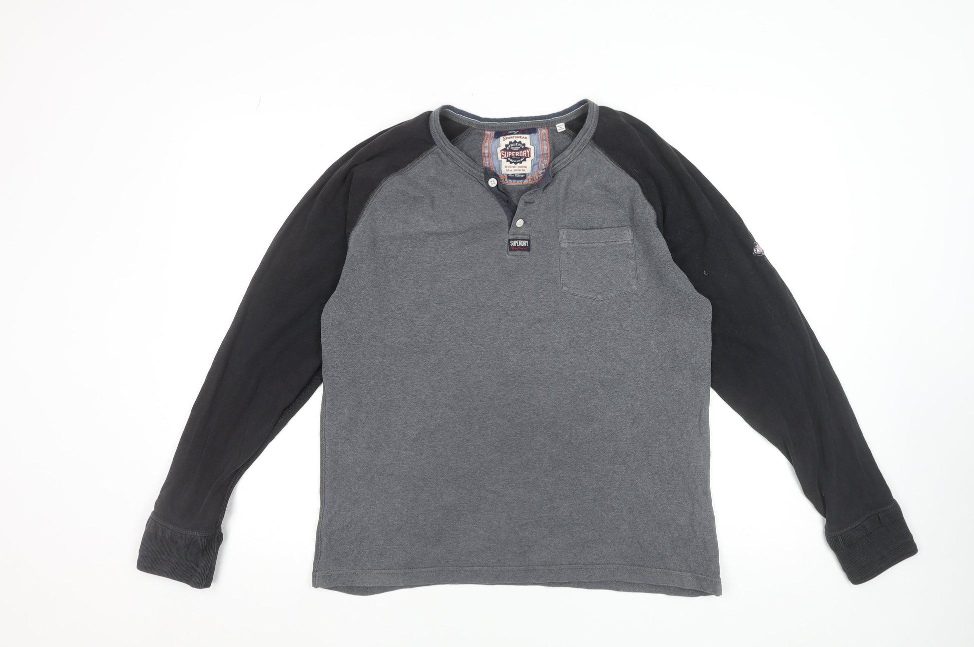 Superdry Men's Grey Long Sleeve Henley Cotton T-Shirt Size L