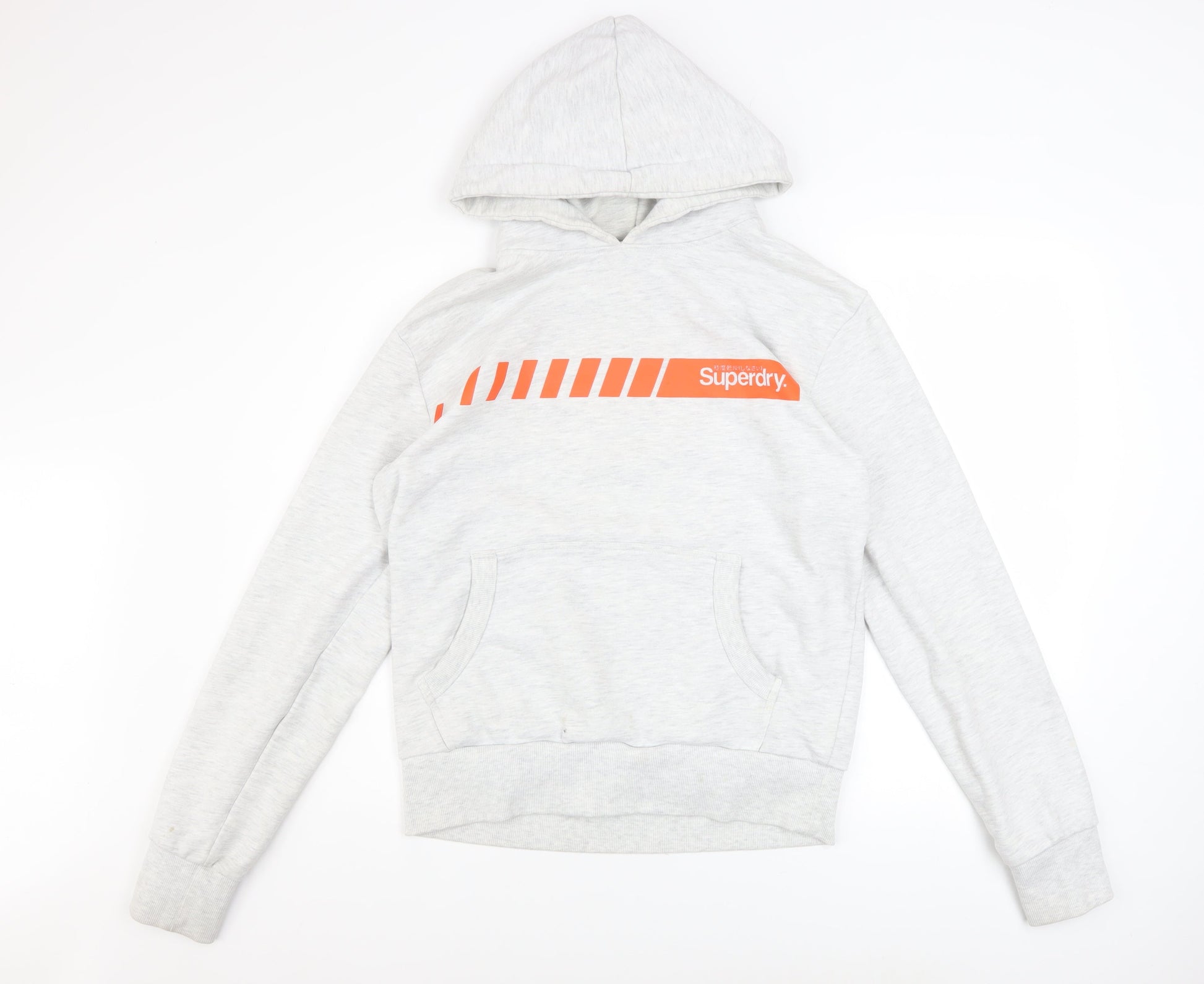 Superdry Mens Grey Pullover Hoodie L Logo Print Fleece Sweatshirt