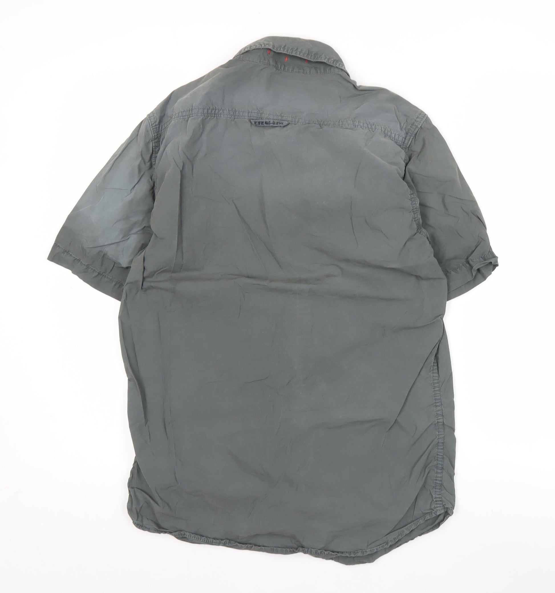 Superdry Men's Grey Short Sleeve Button-Up Cotton Shirt Medium
