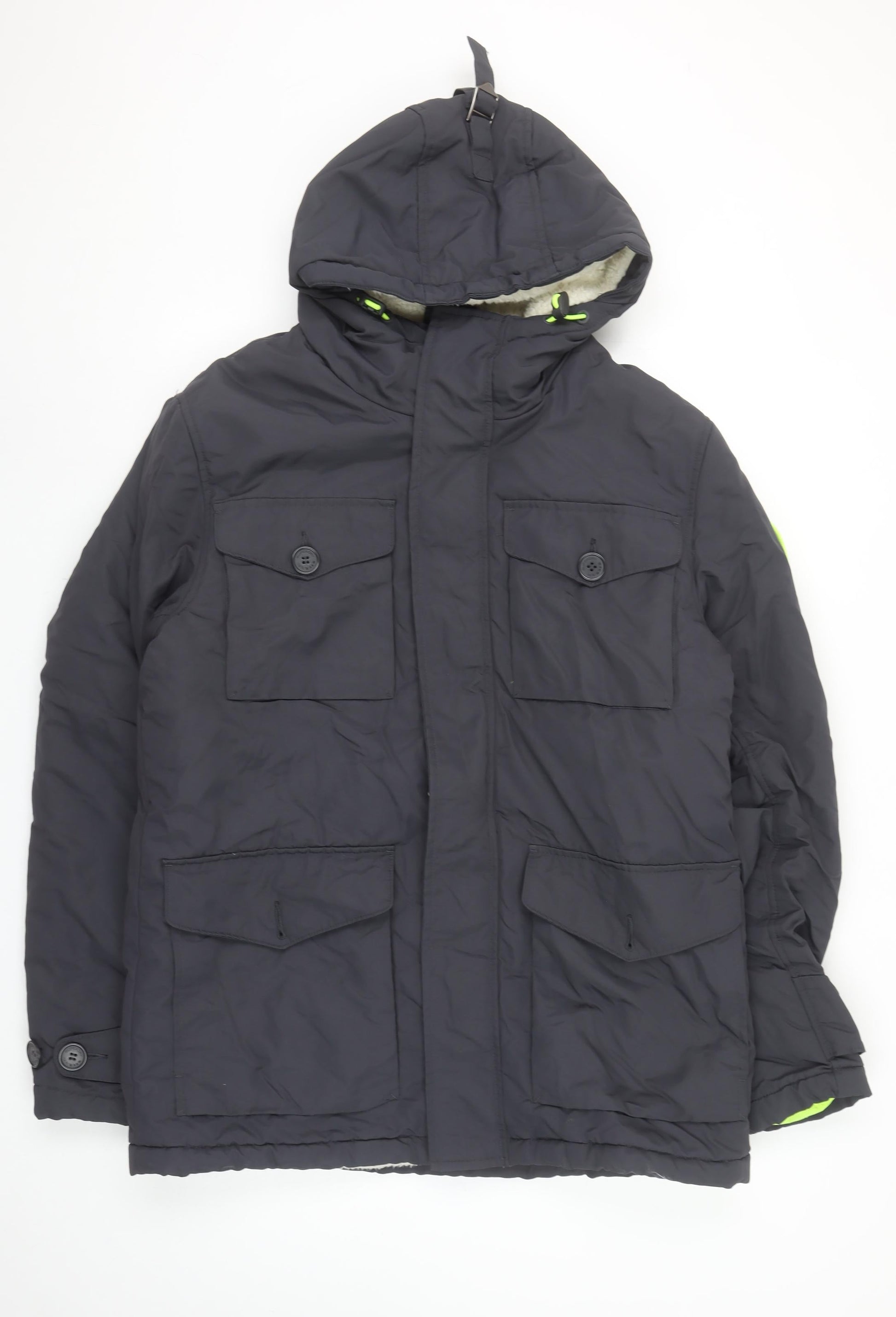 Superdry Men's Grey XL Hooded Parka Jacket Winter Lined Outdoor Coat
