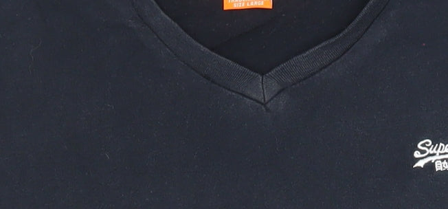 Superdry Men's Navy V-Neck Cotton T-Shirt Large Classic Fit