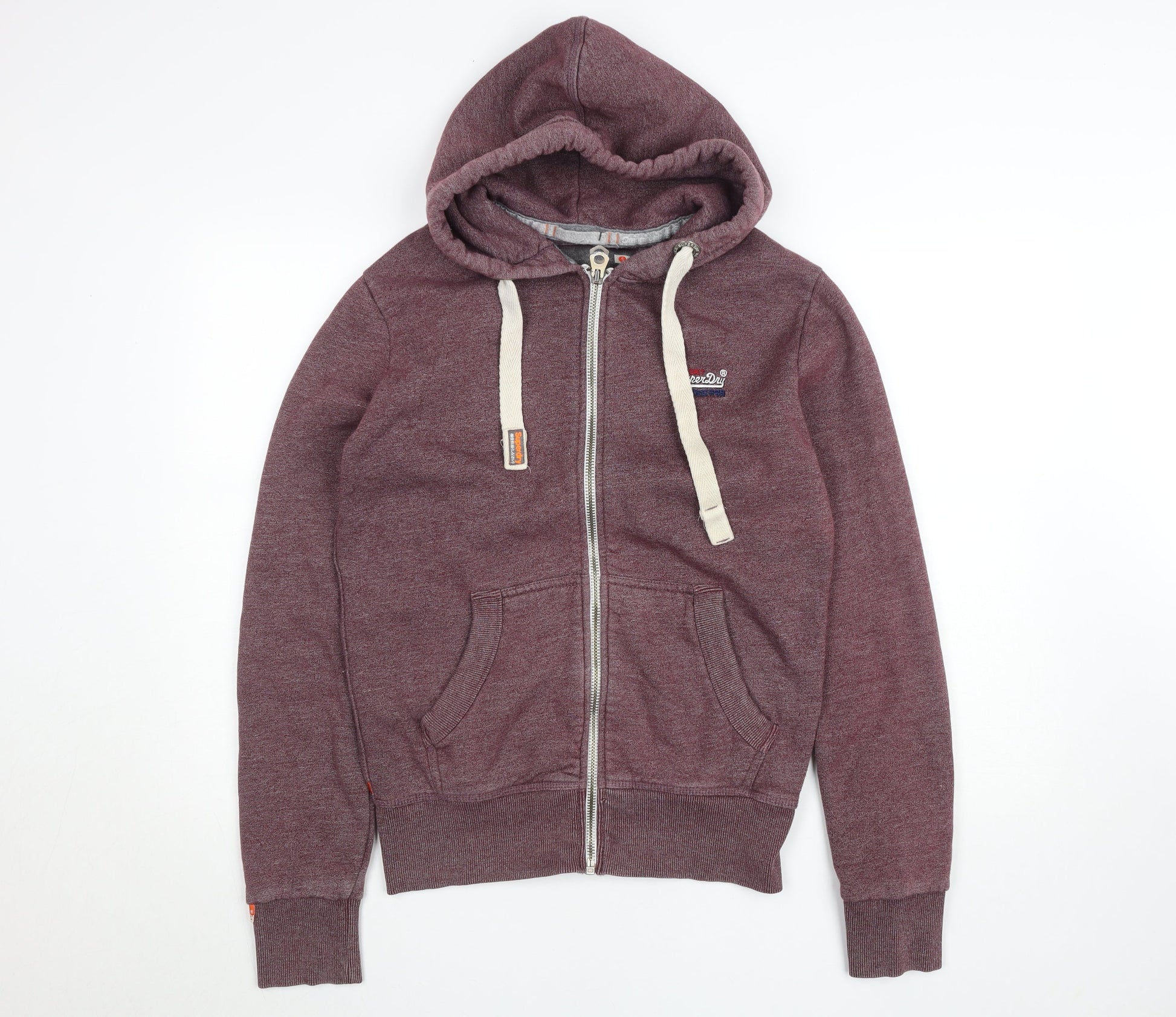 Superdry Men's Red Full Zip Hoodie Small Fleece Lined