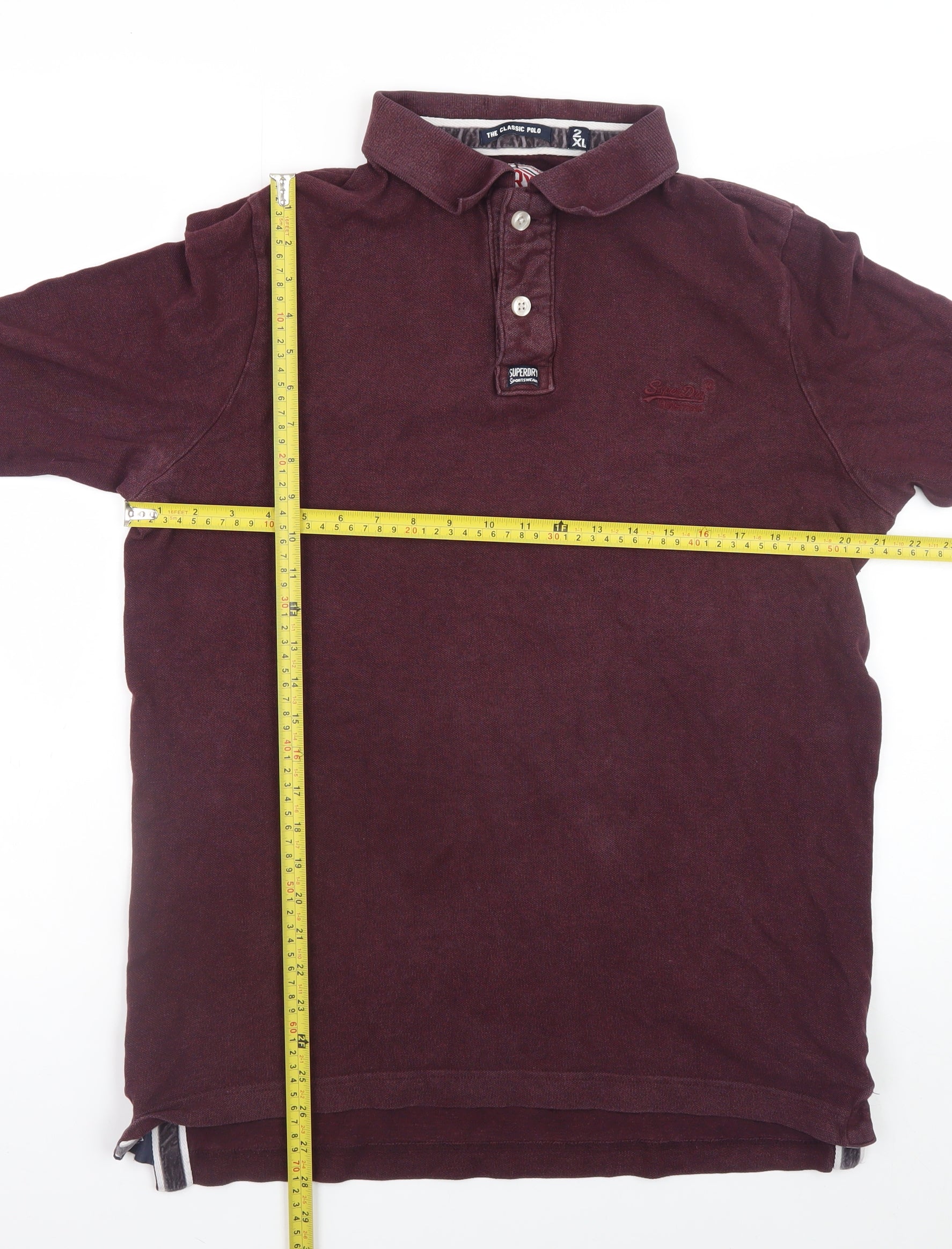 Superdry Men's Red Long Sleeve Polo Shirt 2XL Cotton Casual