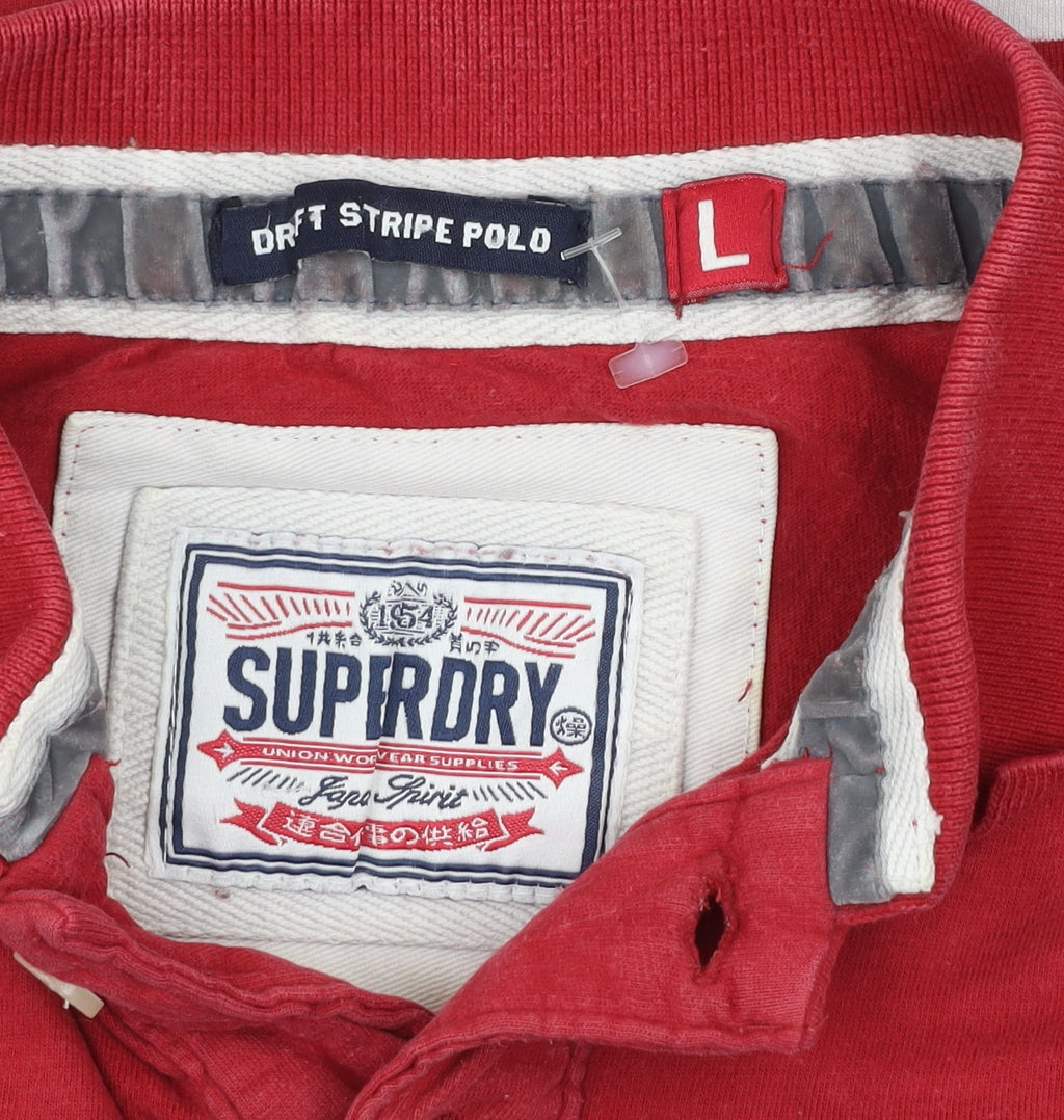 Superdry Men's Red Striped Polo Shirt Size L 100% Cotton Casual