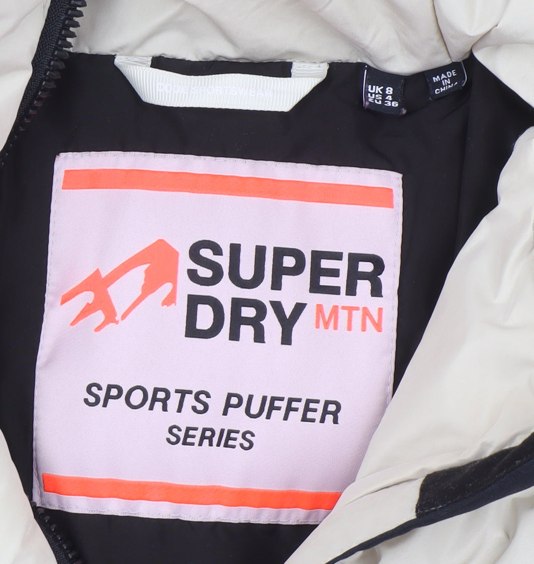 Superdry Women Beige Hooded Puffer Jacket UK 8 Winter Coat