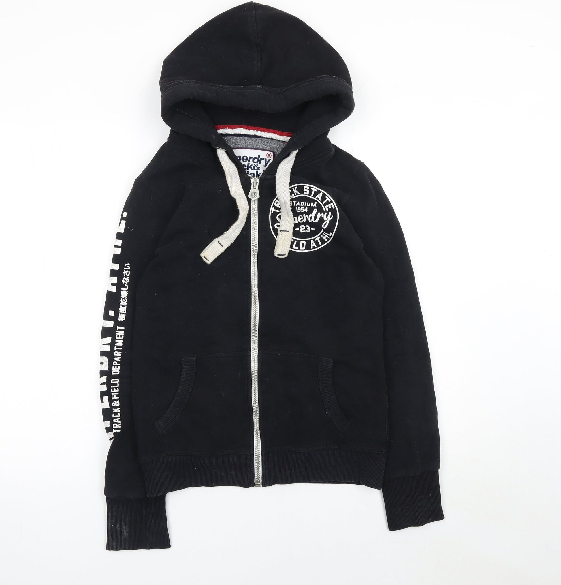 Superdry Women Black Full Zip Hoodie Size S Track & Field Logo