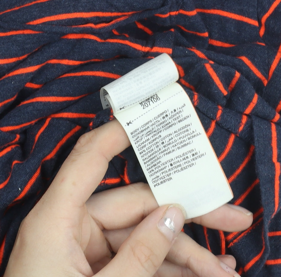 Superdry Women Blue Striped T-Shirt Size L Cotton Blend