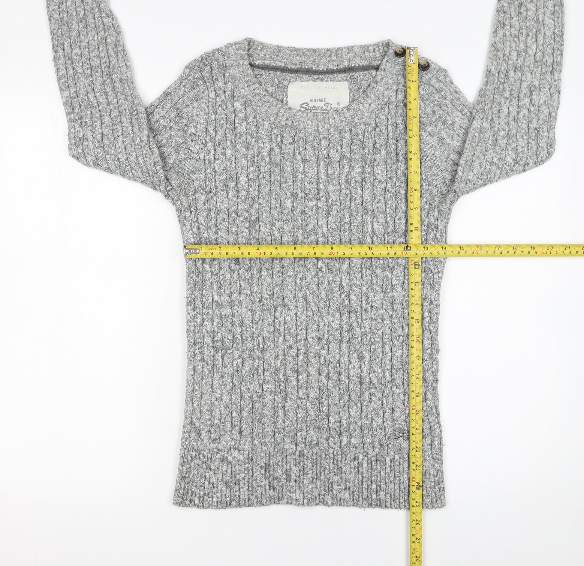 Superdry Women Grey Cable-Knit Pullover Jumper L