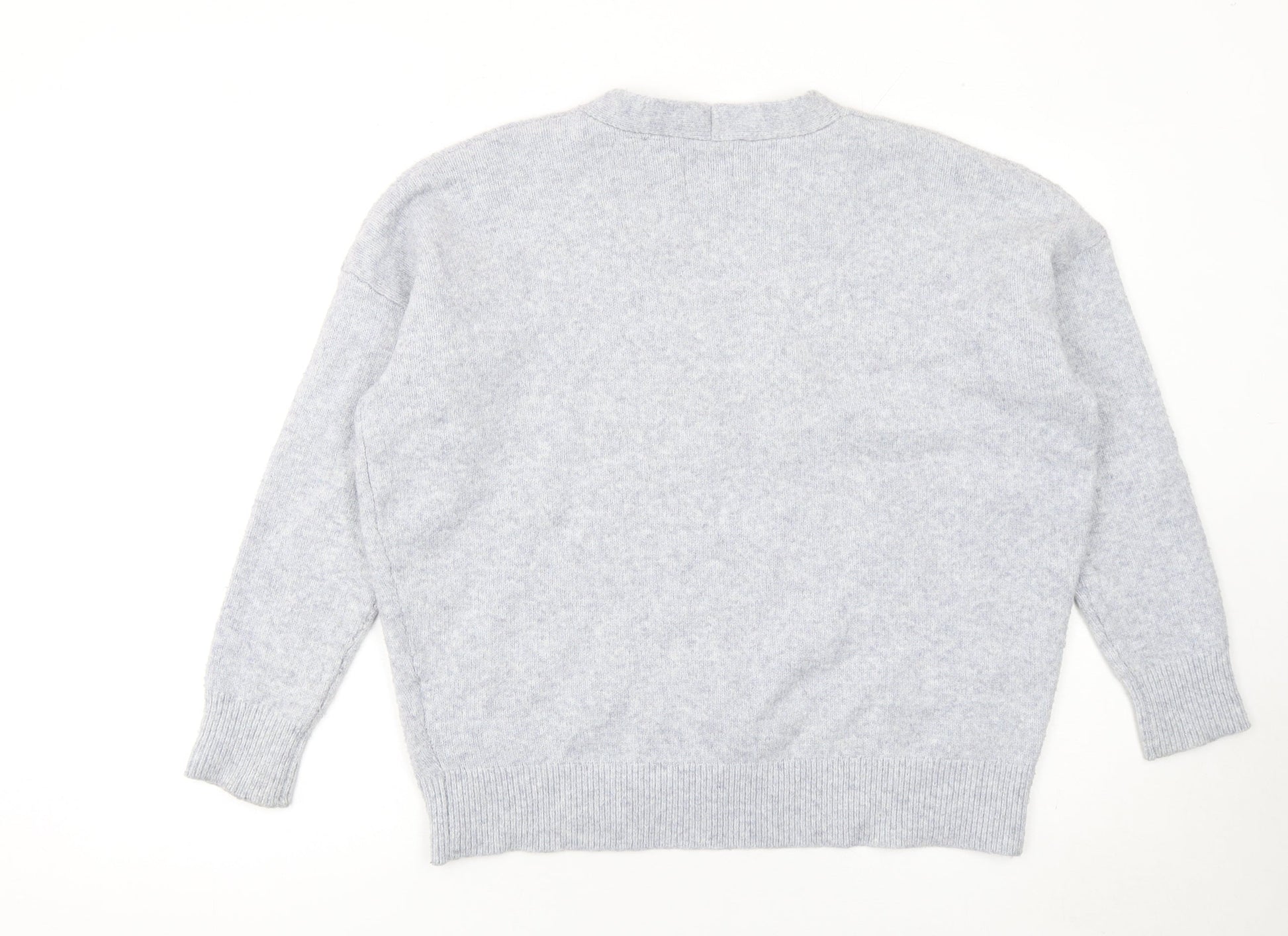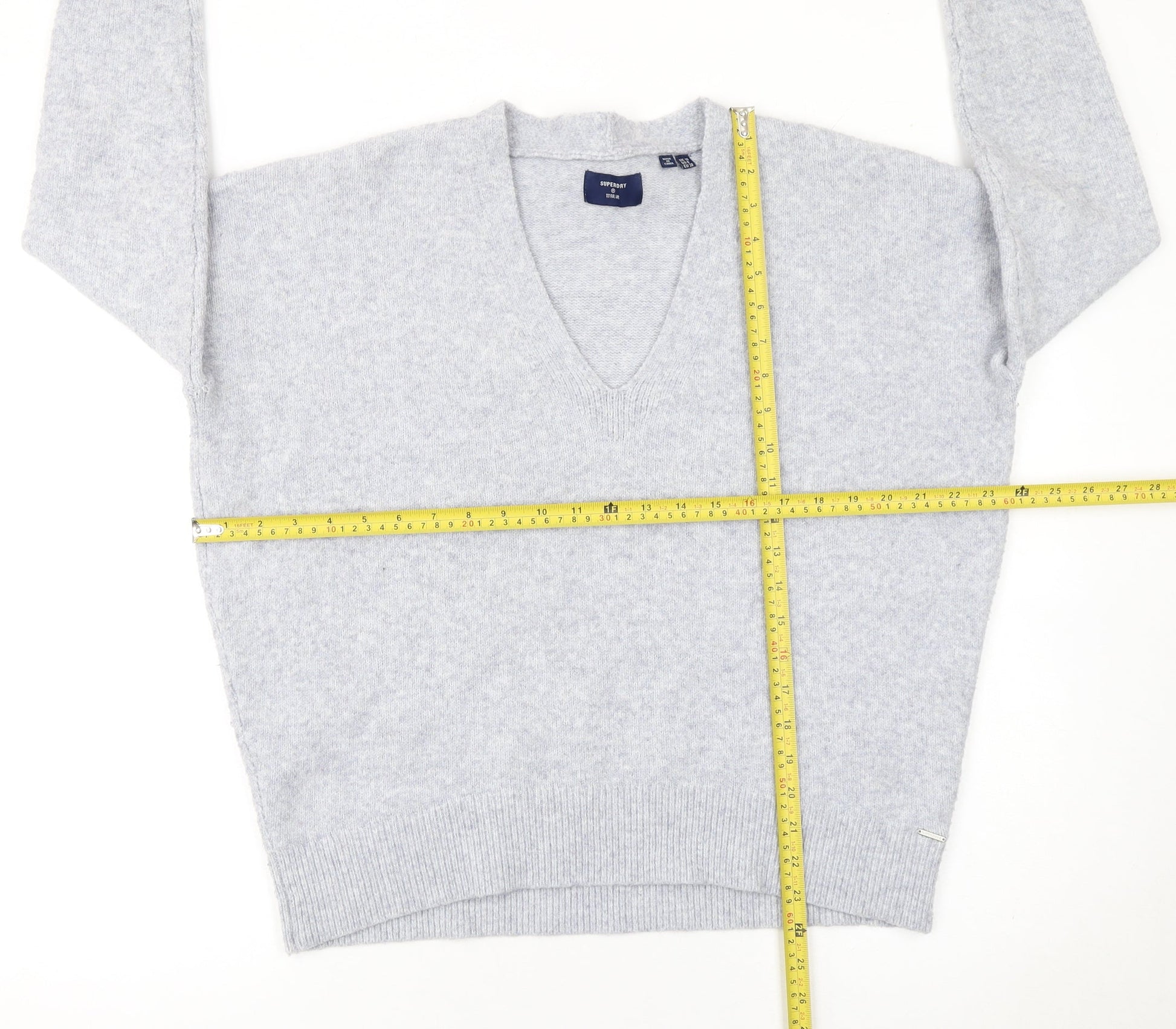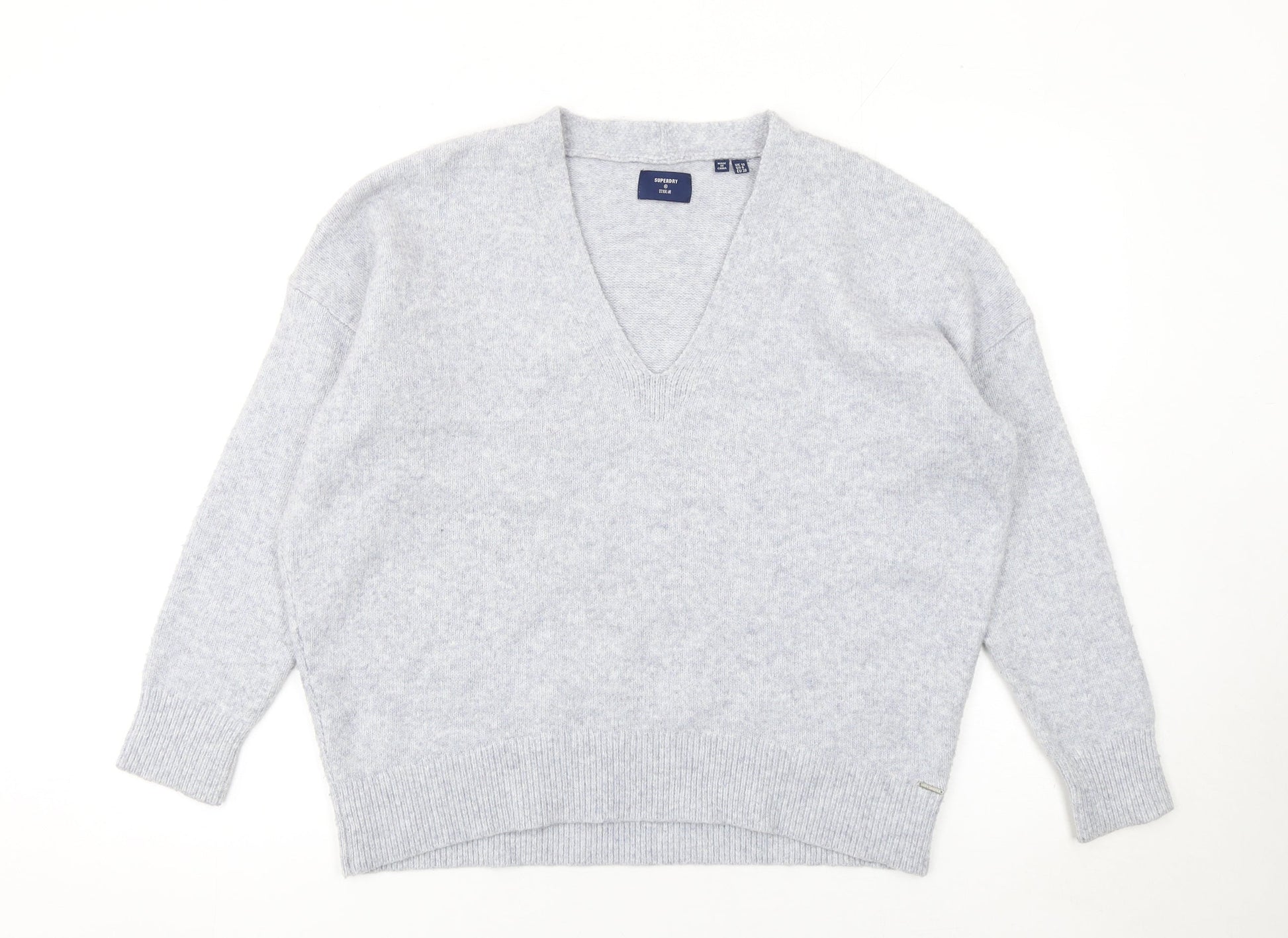 Superdry Women Grey V-Neck Wool Blend Pullover Jumper Size 10