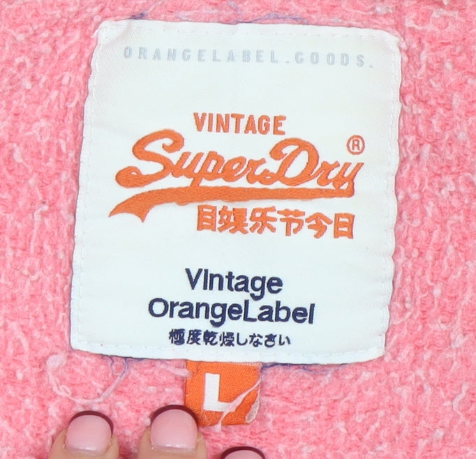 Superdry Women Pink Full Zip Hoodie L Cotton Blend Casual