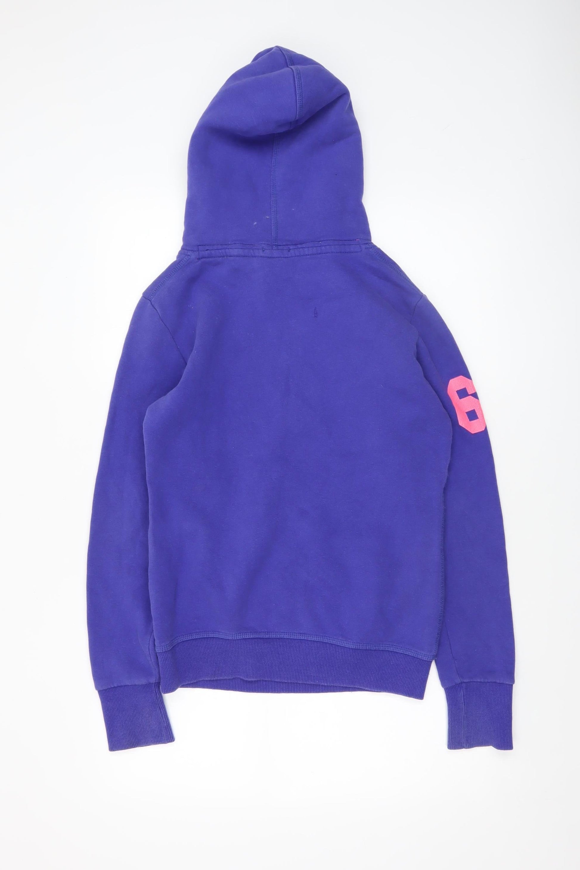 Superdry Women Purple Hoodie Small Graphic Print Pullover Cotton Blend