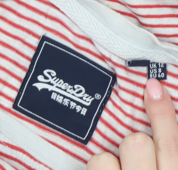 Superdry Women Red White Striped Cotton T-Shirt UK 12