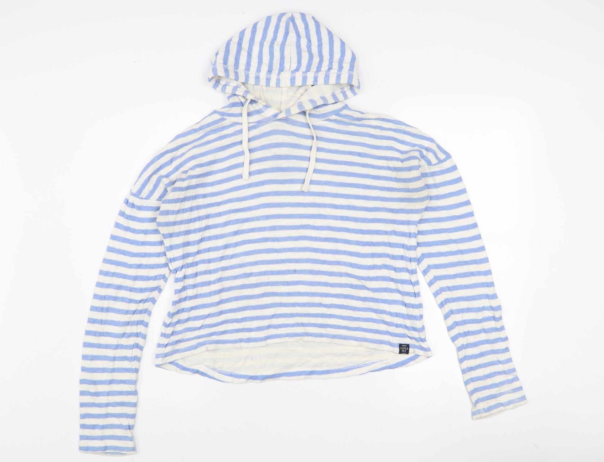 Superdry Women’s Blue Stripe Hoodie Small Cotton Pullover Casual